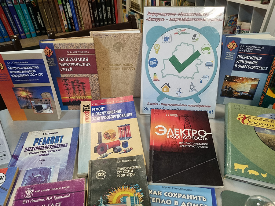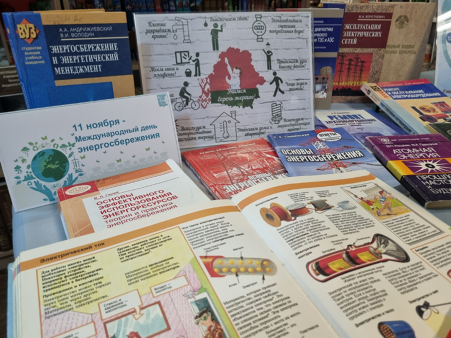 В центральной библиотеке им. М. Горецкого для читателей всех возрастов подготовлена тематическая выставка «Энергосбережение – умное потребление» на которой представлена литература по популяризации энергосберегающего образа жизни, можно узнать, что такое электричество, кто изобрел первую лампочку и батарейку, как электричество доставляется в наши дома, какие бывают электростанции и много другое.