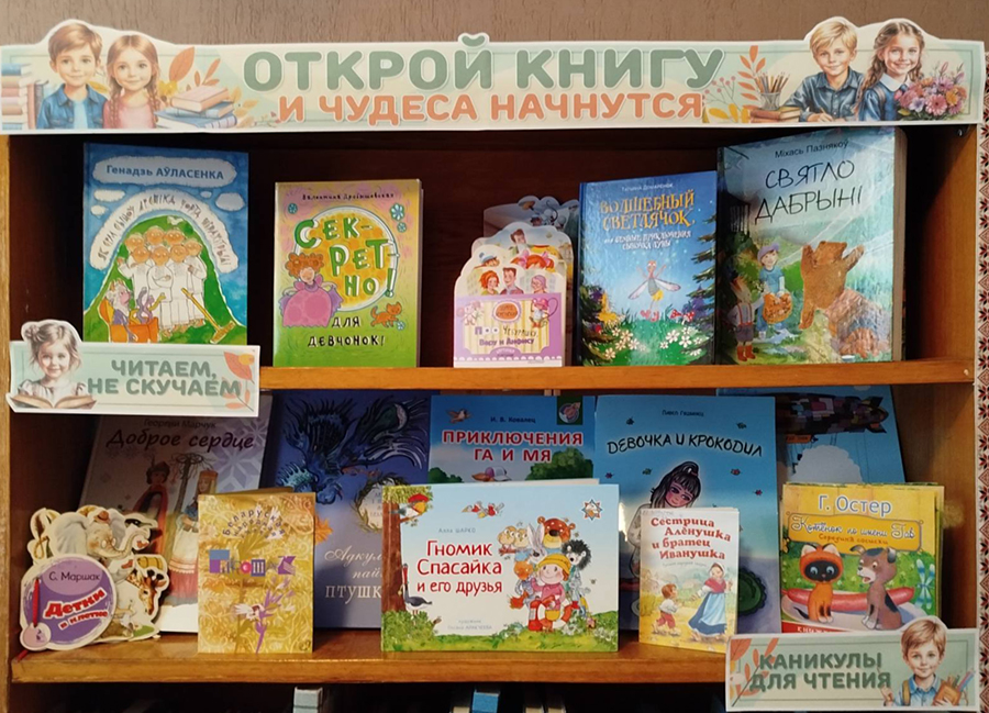К каникулам в библиотеках были оформлены книжные выставки: «Чудо-книжки – чудо-детям», «Осенью мы не скучаем, а читаем», «Сто тысяч «почему» живут на белом свете», «Открой книгу и чудеса начнутся», «До свидания, осень». На книжных полках были представлены разнообразные книги по интересам: сказки, познавательные издания, книги о природе и окружающем мире, а также сборники загадок, занимательных фактов и литературные новинки. Эти выставки стали настоящим оазисом для любознательных детей – каждое издание было словно маленькое окно в удивительный мир знаний и фантазии.