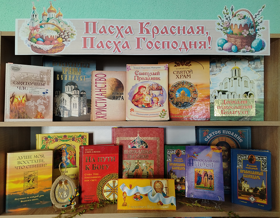 В преддверии праздника в центральной библиотеке была оформлена выставка-инсталляция «Пасха Красная, Пасха Господня!». Книжные полки украсили издания, посвящённые истории и традициям праздника: Духовная литература о Воскресении Христовом, сборники пасхальных рассказов и стихов, книги о народных обычаях и обрядах. Особое место заняли кулинарные книги и журналы с рецептами пасхальных куличей, творожных пасх и других праздничных угощений, а также издания по декоративно-прикладному творчеству с идеями украшения пасхального стола и росписи яиц.