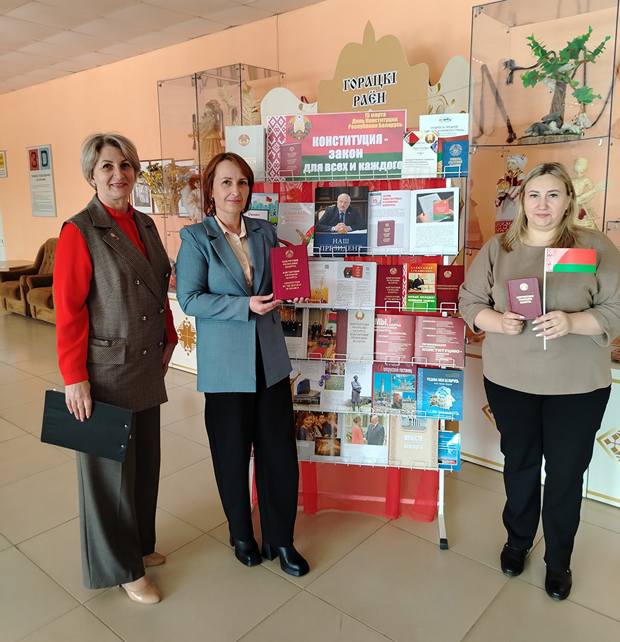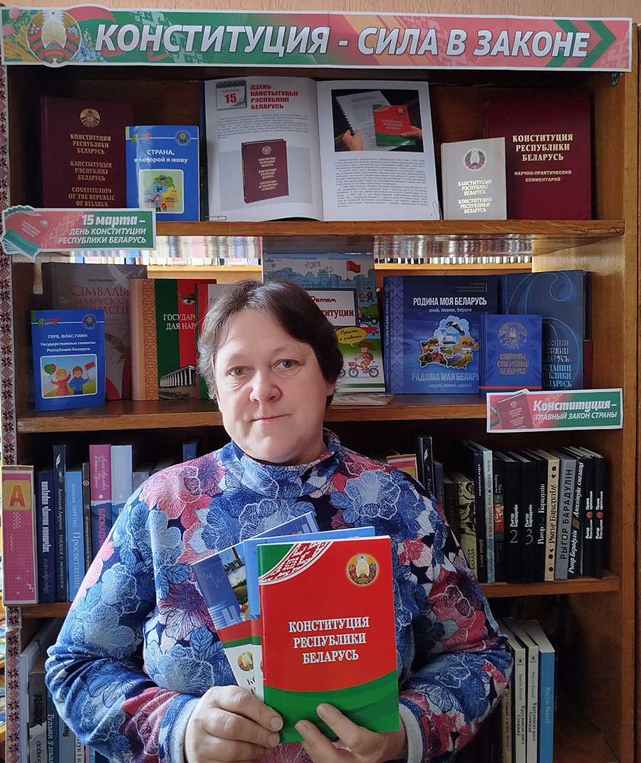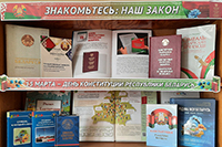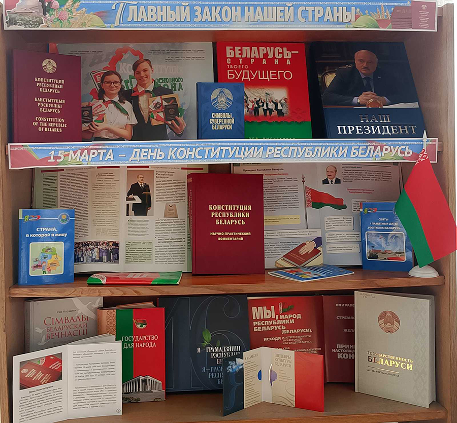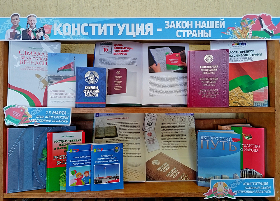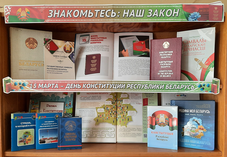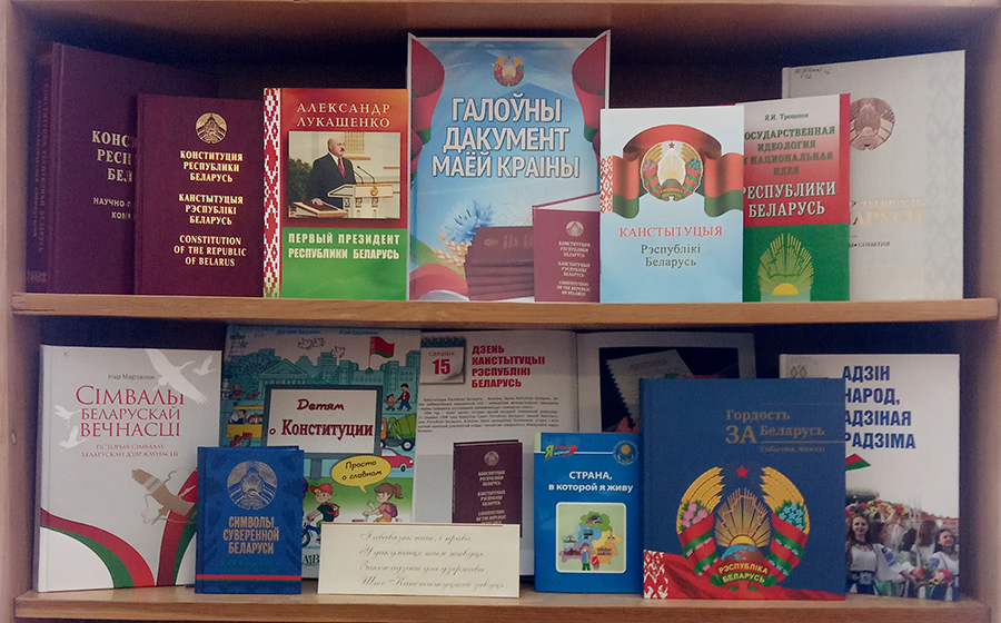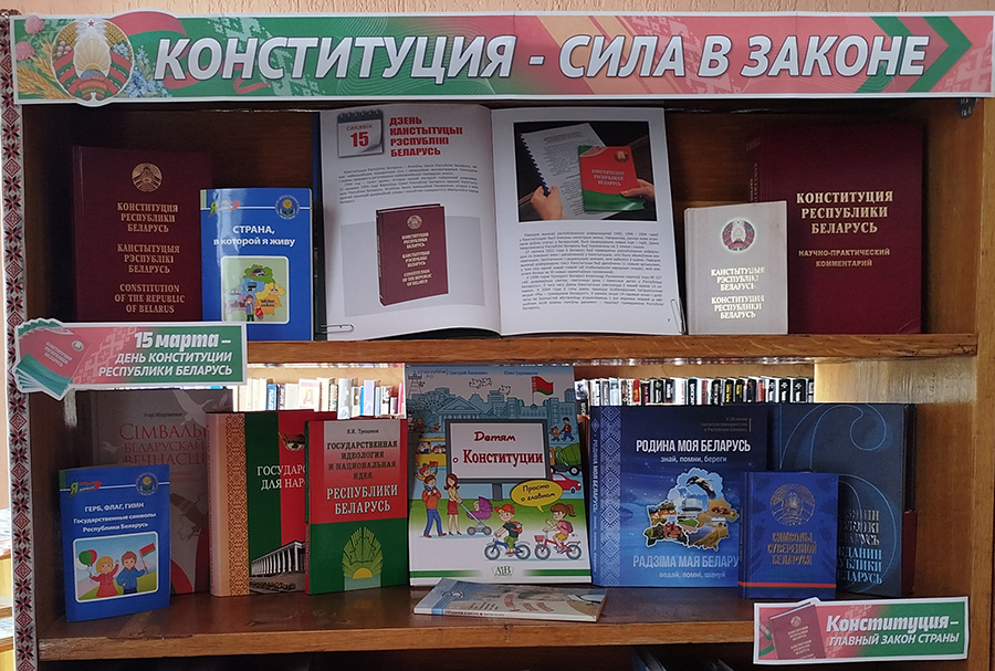 К этой знаменательной дате в библиотеках сети оформлены книжные выставки: «Человек. Государство. Конституция», «Конституция – закон нашей страны», «Конституция – сила в законе», «Знакомьтесь: наш Закон», «Конституция Беларуси – символ государства», «Галоўны дакумент маёй краіны», «Конституция – закон, по нему все живем», «Сверяя жизнь по Конституции», «Главный закон нашей страны».
