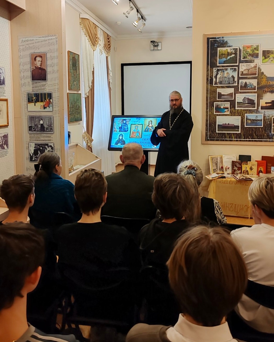 Благочинный Горецкого округа Могилёвской епархии иерей Никита Хроменков поведал о духовных подвигах и прославлении преподобных Евфросинии Полоцкой и Манефы Гомельской, праведных Иулиании Ольшанской и Софии Слуцкой и блаженной Валентины Минской. Он также обратил внимание и на особенности их образов на иконах и рассказал о чинах святости, ответил на вопросы присутствующих и обратился к молодёжи с пожеланием учиться у святых подлинным нравственным ценностям. Член народного литературного коллектива «Роднае слова» Валентина Копач подробнее остановилась на житии Манефы Гомельской, привела примеры её чудодейственной помощи людям и поделилась впечатлениями о паломнических поездках к месту упокоения Валентины Минской и к мощам Манефы Гомельской.