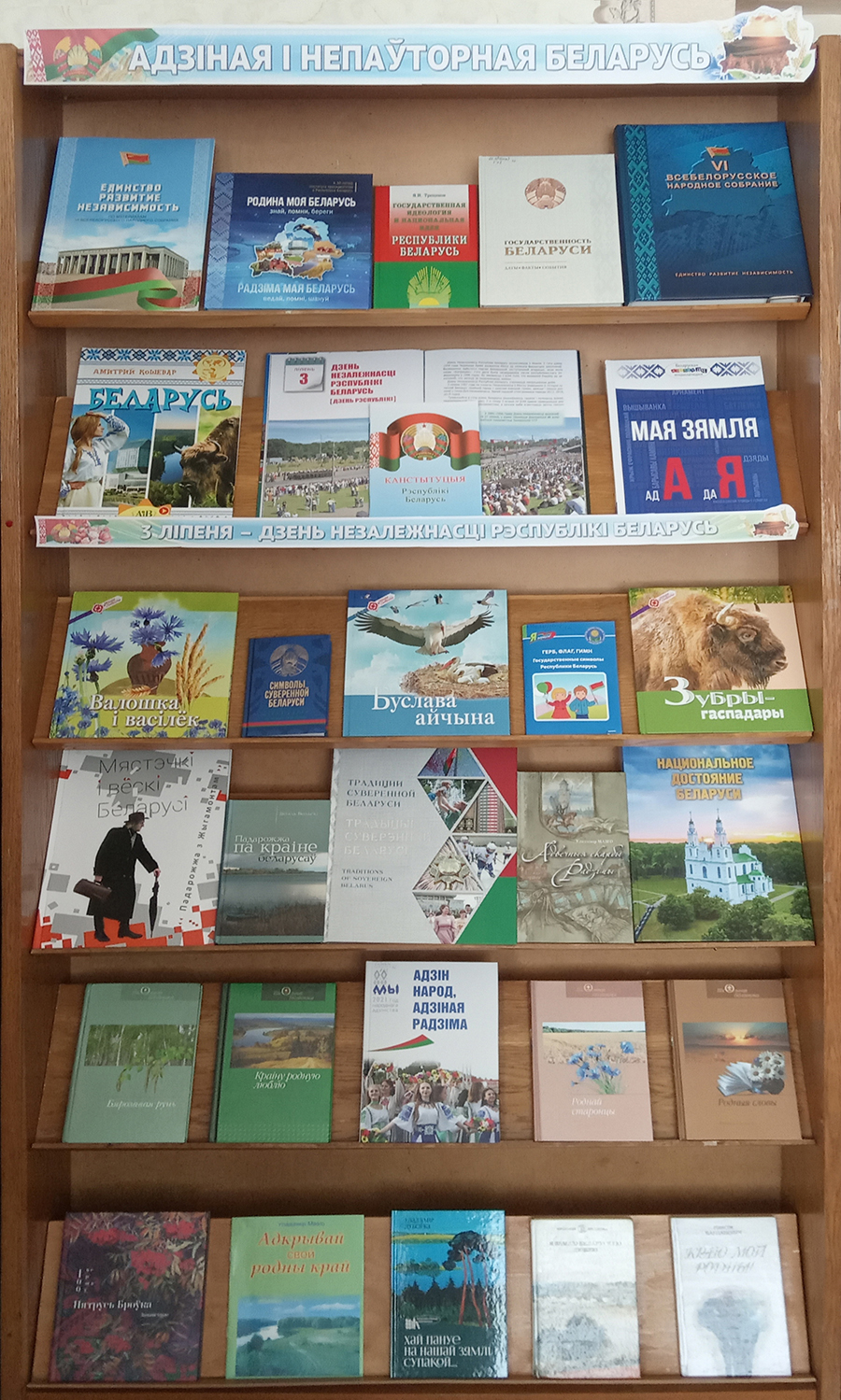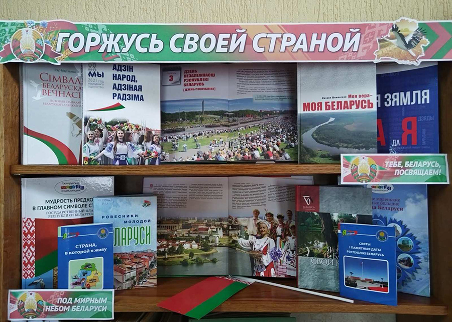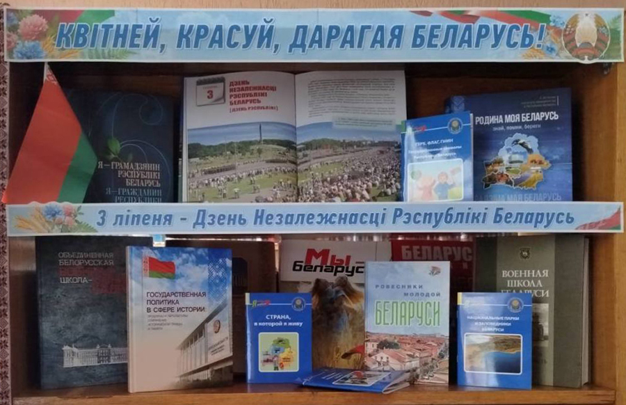 В преддверии праздника в библиотеках сети были организованы выставки: «Квітней, красуй, дарагая Беларусь», «О, Беларусь, краіна родная!», «Адзіная і непаўторная Беларусь», «Беларусь – это мы», «Квітней пад небам сінім, Беларусь!», «Я гэты край Радзімай называю», «Твая зямля, твая Радзіма, названа светла – Беларусь!», «Горжусь своей страной», «Гордимся мы историей своей».