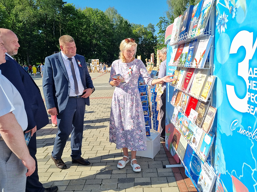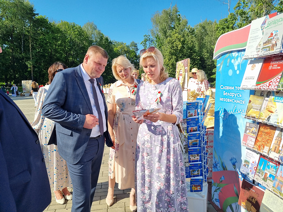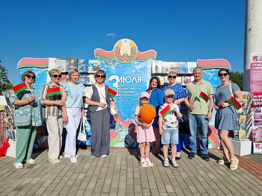 Традиционно центральная библиотека им. М. Горецкого подготовила для всех жителей выставку-фотозону «С любовью к Родине!», которая украсила площадь амфитеатра, где проходили праздничные мероприятия.