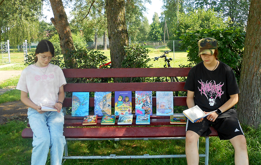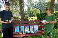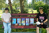 Также возле библиотеки действовала книжная фотозона «Лужайка-Почитайка», которая представляла собой уютную площадку с деревянной лавочкой, на которой были аккуратно разложены книги. Все желающие могли подойти, выбрать понравившуюся книгу, почитать и сделать фотографию на фоне этой приятной и располагающей к чтению обстановки, что подчеркивало важность книги чтения.