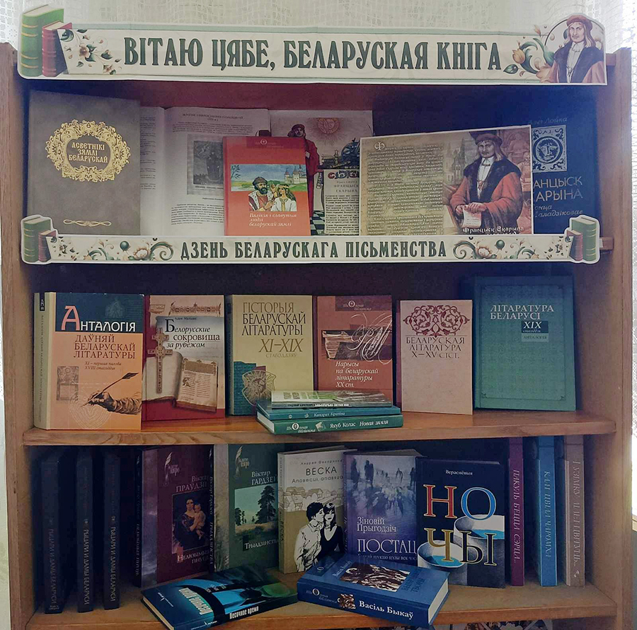 Бібліятэкарамі сеткі, ў рамках святкавання Дня беларускага пісьменства, падрыхтаваны тэматычныя выставы: «З вытокаў беларускага слова», «Да вытокаў кніжасці», «Откуда письменность пошла», «История белорусской письменности», «Путешествие в историю белорусской письменности», «Светачы беларускай зямлі», «Вітаю цябе, беларуская кніга». Любы жадаючы можа пазнаёміцца з адметнымі падзеямі беларускай гісторыі і гісторыі беларускай літаратуры, а таксама з творамі беларускіх аўтараў. Запрашаем усіх жадаючых наведаць бібліятэкі і азнаёміцца з выставамі.