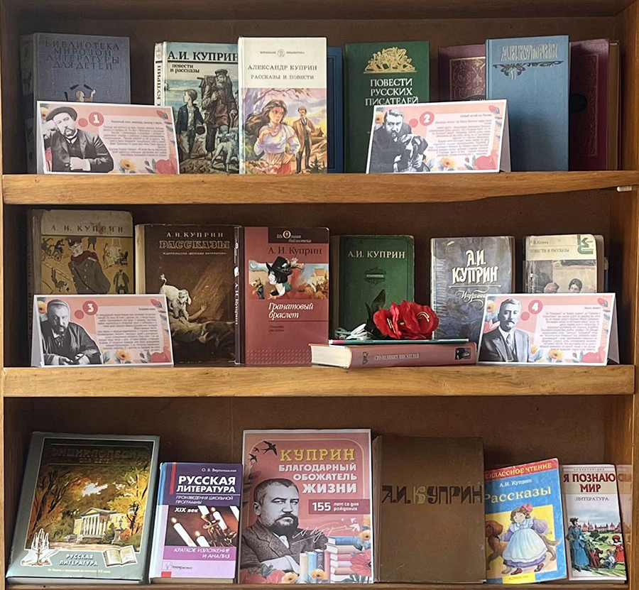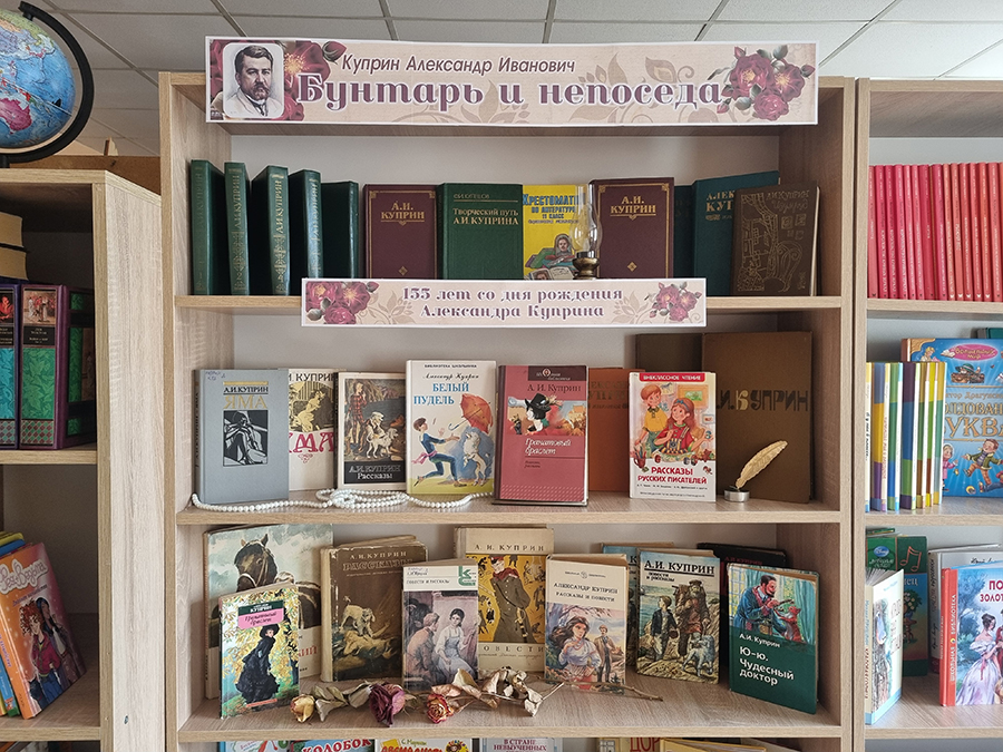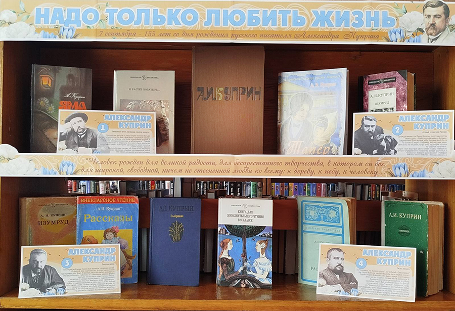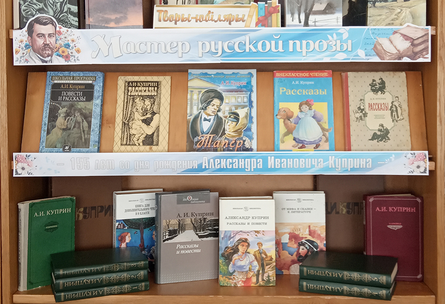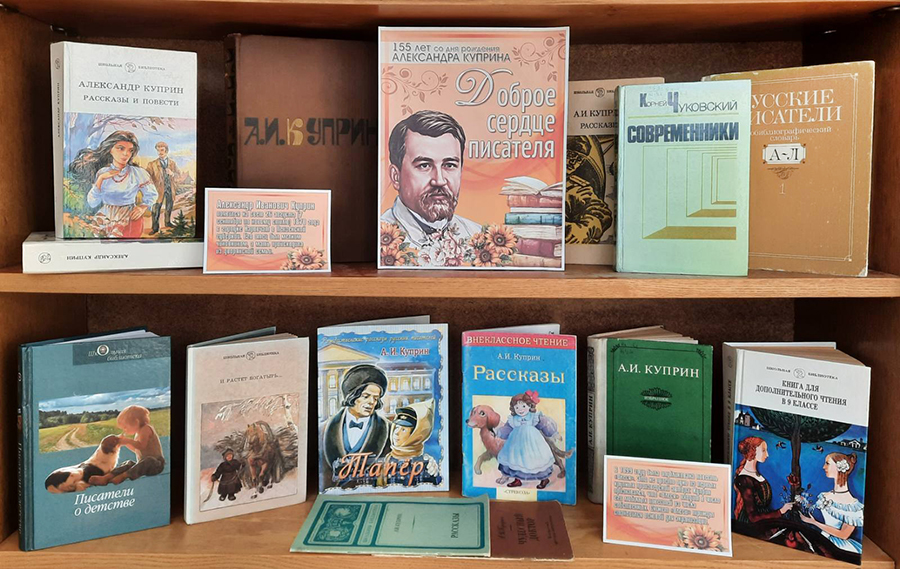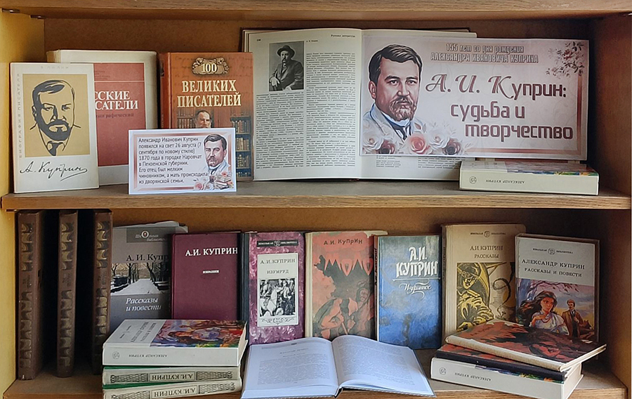 В честь юбилея великого русского писателя Александра Ивановича Куприна, библиотеки ГУК «Горецкая РБС» приглашают открыть или заново пережить встречу с его бессмертными произведениями, посетив книжные выставки: «Бунтарь и непоседа», «Надо только любить жизнь», «Доброе сердце писателя», «Благодарный обожатель жизни», «А.И. Куприн: судьба и творчество», «Мастер русской прозы». На выставках представлены самые знаменитые произведения писателя – «Гранатовый браслет», «Олеся», «Река жизни», «Поединок», «Яма», «Белый пудель» и многие другие. Александр Куприн раскроет дверь в свой волшебный мир, где добрый талант писателя продолжает приносить радость людям, а это значит, что время читать Куприна не заканчивается! Предлагаем вам окунуться в мир творчества писателя, вспомнить школьную программу, открыть для себя то, что еще не читали, а также ознакомиться с краткой биографией талантливого писателя и переводчика.