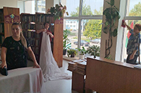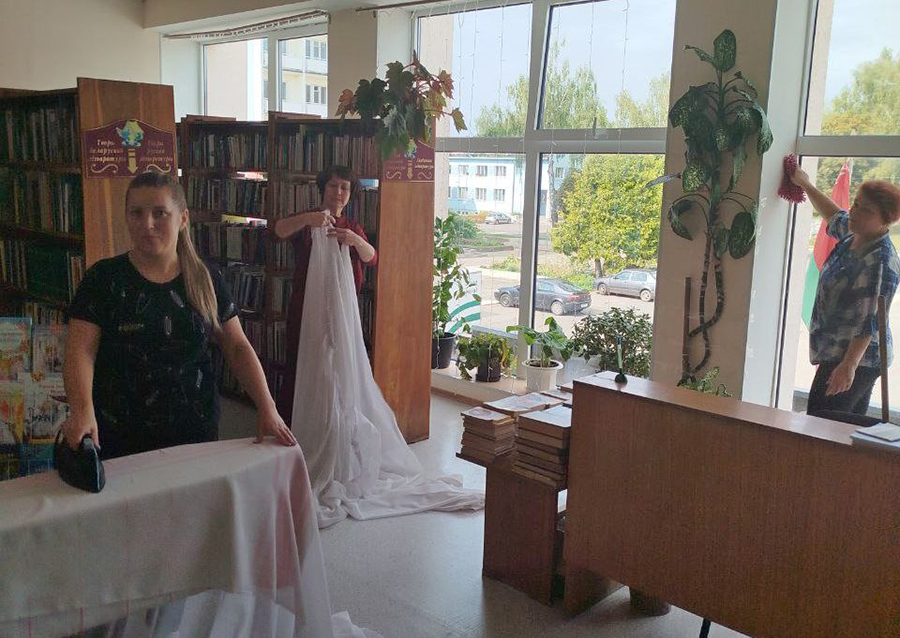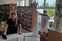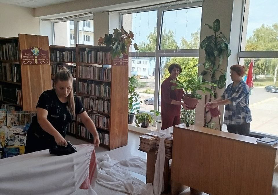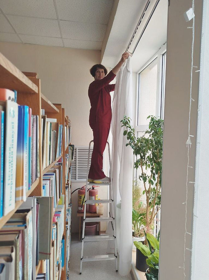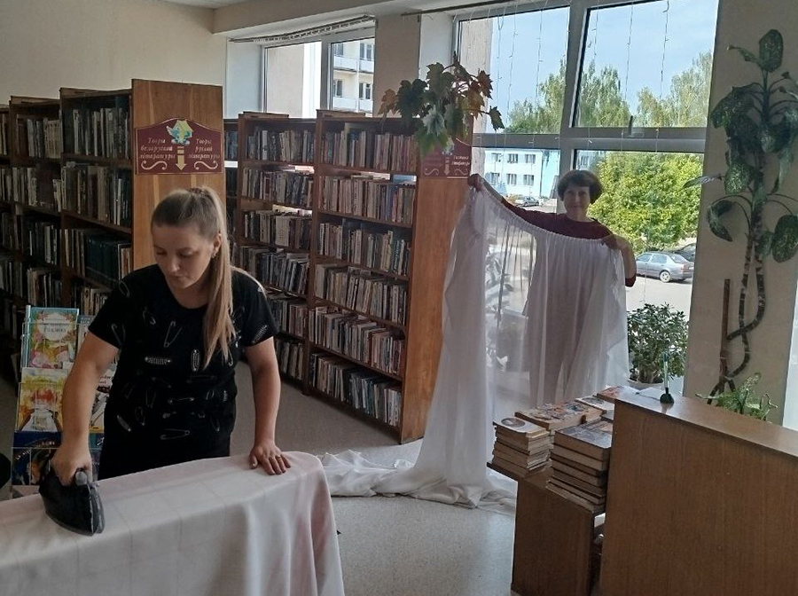 Этот день прошел эффективно и насыщенно сотрудники взяли ведра, тряпки и пошли чистить фонд от пыли, мыть окна и шторы, пересаживать цветы, работать с интерьером. Важный этап – это обеспыливание полок и книг и мелкий ремонт, правильная расстановка фонда, изъятие устаревшей литературы, если требуется, но самое основное — починка книг. За все время использования они изнашиваются, где-то надо подклеить корешок или починить обложку.