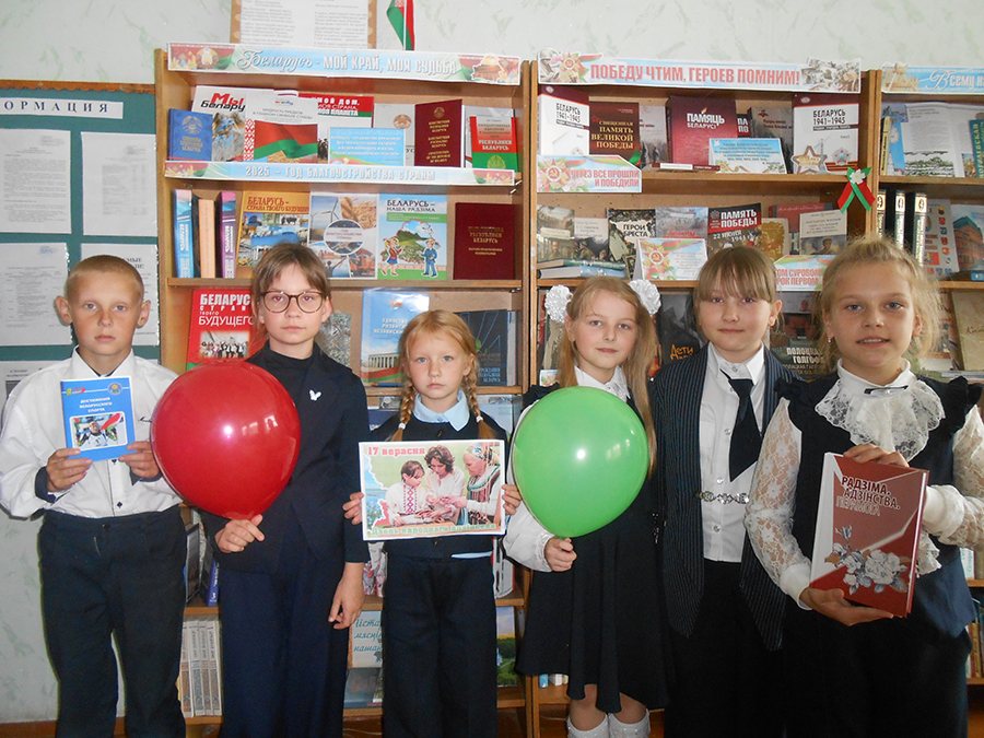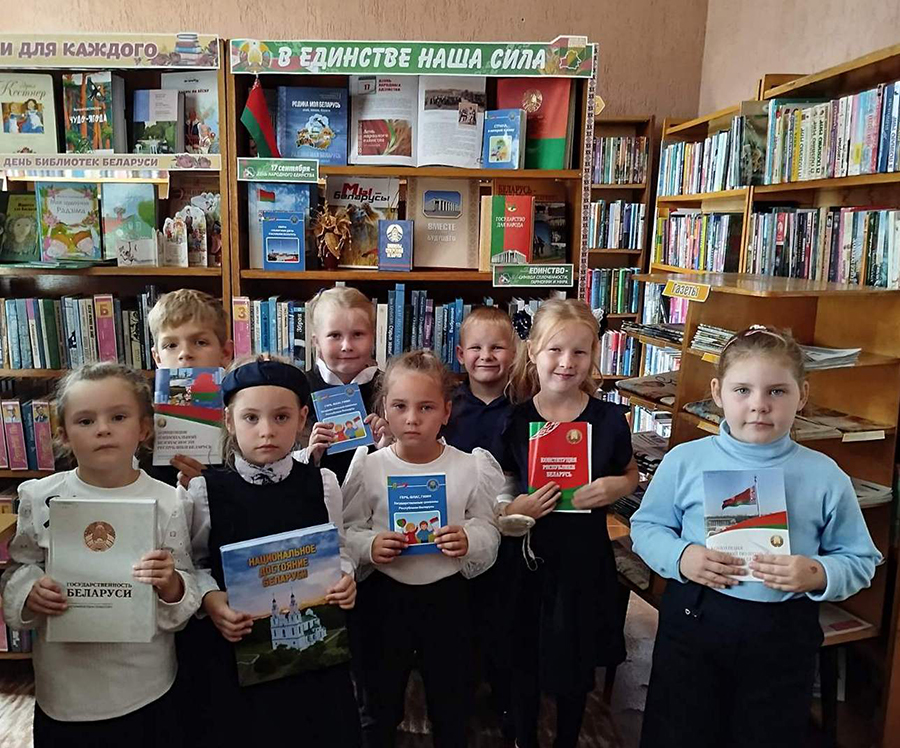 В преддверии праздничной даты сотрудники центральной библиотекари отдела обслуживания и информации для учащихся 6 «В» класса ГУО «Средняя школа №2 г. Горки» провели обзор книжной выставки «Для нас единство наше свято». В филиалах библиотечной сети прошли: обзор книжной выставки «Беларусь единая», патриотический час «Беларусь – страна единая», информационные часы «Единый народ – единая держава», «Пусть крепнет наше государство, где все едины и равны». В ходе мероприятий участники познакомились с книгами и материалами, раскрывающими историю, культуру и достижения Беларуси, а также обсудили значение национального единства для сохранения государственности и развития страны.