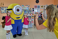 Как только гости подходили ко входу в кинотеатр, их встречали не просто улыбающиеся персонажи – а живые, огромные, настоящие ростовые куклы Волка, Лисы и Миньона. Дети просто сияли от восторга, стремясь обнять мультяшных героев и сфотографироваться с ними на память – настоящая анимационная магия в реальности!