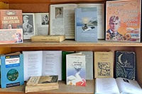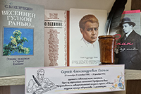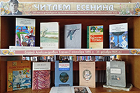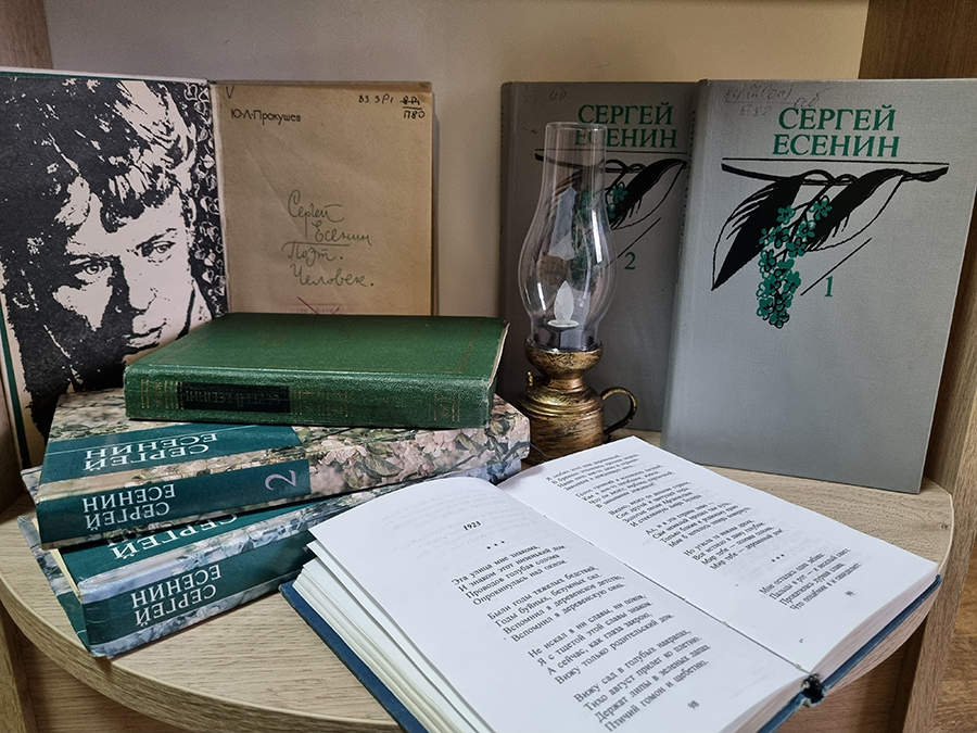 На полках вниманию читателей представлены сборники его знаменитых стихов, а также книги о его жизни, статьи известных поэтов, критиков и литературоведов, которые подчеркивают заслуги «последнего поэта деревни», воспоминания современников раскрывающие тайны его творчества. Здесь, у выставки, читатели могут погрузиться в мир есенинской лирики, вспомнить яркие цитаты из его стихотворений, наизусть почитать стихи, ставшие песнями.