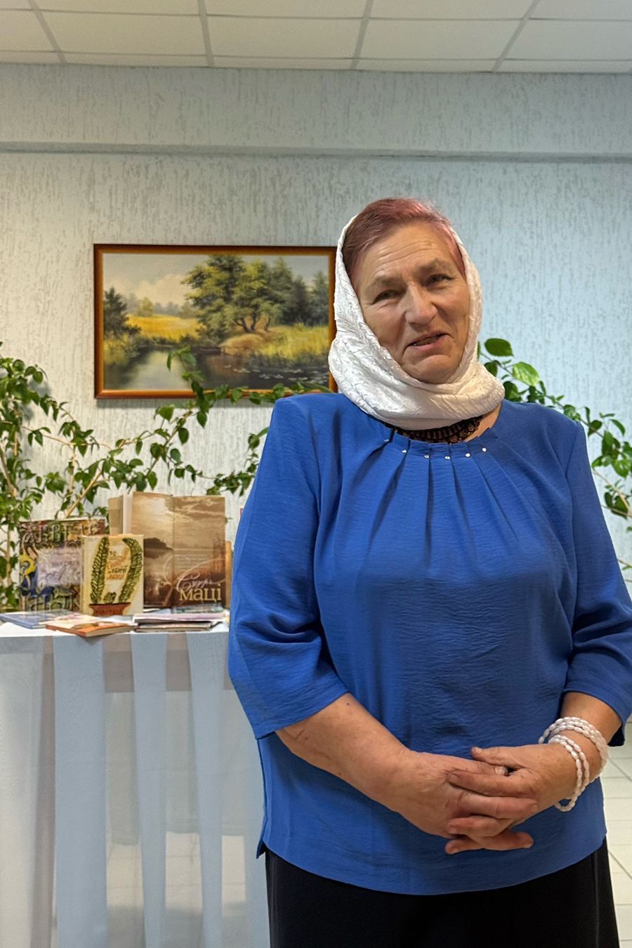 Член народного литературного коллектива «Роднае слова» Надежда Курбасова рассказала притчу о материнской любви «Глаза матери», дала совет молодежи словами поэта Расула Гамзатова, а также исполнила попурри своих любимых песен о маме.