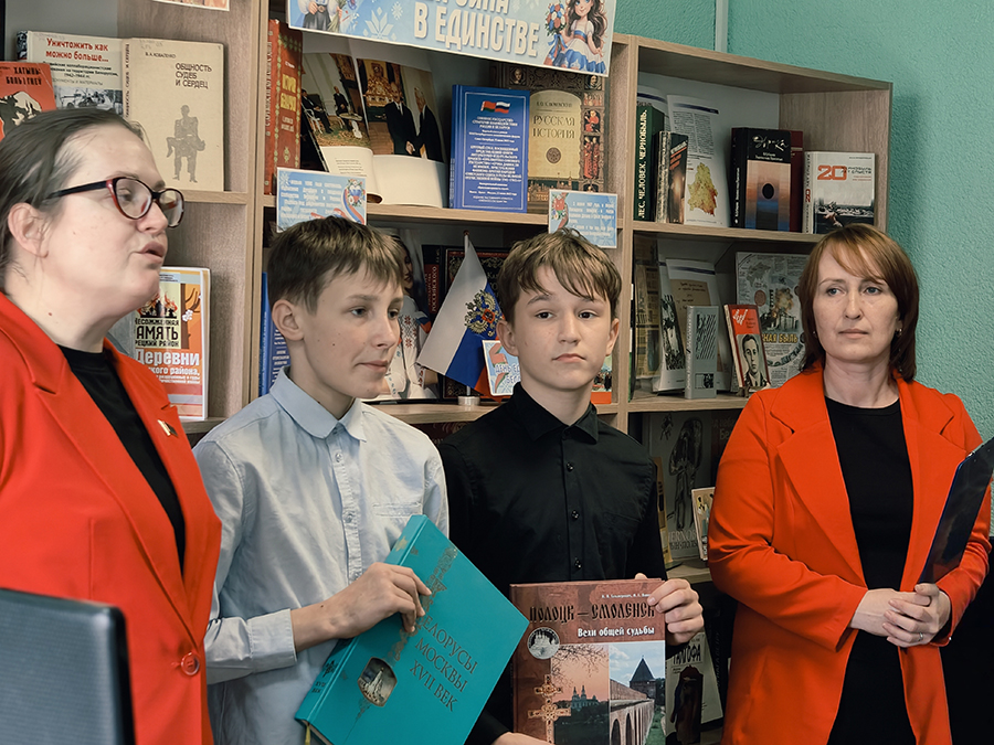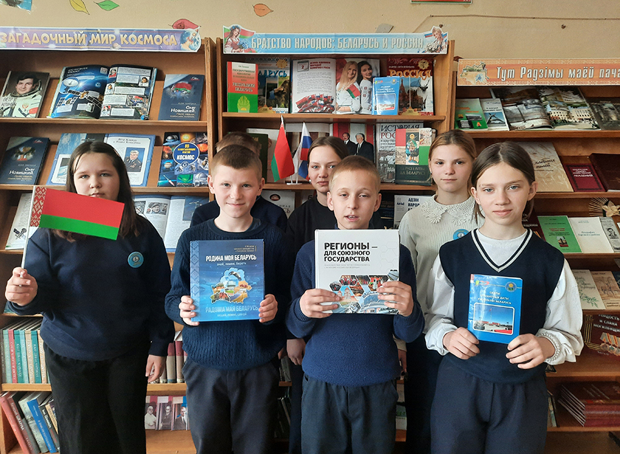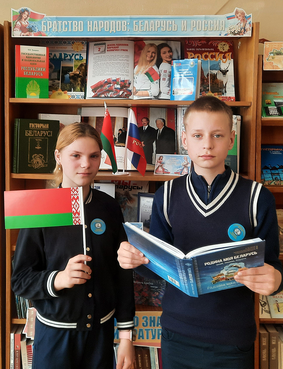 Школьники не только узнали новые факты о возникновении праздника и развитии союзных отношений между Беларусью и Россией, но и смогли глубже понять значение дружбы, взаимной поддержки и культурного единства. Особый интерес вызвала тематическая книжная выставка, где были представлены издания, раскрывающие богатую общую историю, традиции и достижения двух народов.