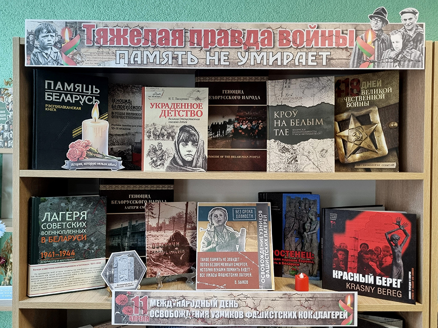 К скорбной дате библиотекари сети подготовили тематические выставки: «Тяжелая правда войны», «Забвенью не подлежит», «Ад за колючей проволокой», «Концлагеря: чтобы история не повторялась», «Память, обожженная войной», «Война за колючей проволокой». На выставках представлены документальные хроники, воспоминания узников, архивные материалы, художественные произведения, основанные на реальных событиях. Читатели могут познакомиться с судьбами людей, прошедших через лагеря, узнать о повседневной жизни заключенных, о мужестве, взаимопомощи и сопротивлении, которые помогали выжить в условиях жесточайшего террора. Особое место занимают книги о детях войны — тех, чье детство было украдено колючей проволокой и страхом. Эти издания не просто рассказывают историю — они заставляют чувствовать, сопереживать и помнить.