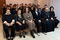 О союзнических отношениях Беларуси и России, общей истории, культурном и духовном родстве двух народов говорили со студентами член Союза писателей Беларуси Алеся Цеван, член народного литературного коллектива «Роднае слова» Надежда Курбасова и настоятель прихода храма Святой Живоначальной Троицы агрогородка Рясно Дрибинского района иерей Геннадий Мартынов. Алеся Дмитриевна прочитала свои стихи о силе единства и дружбе народов, о традиционных ценностях и любви к родной земле, а Надежда Курбасова исполнила песню о Родине, а затем вместе с молодежью — легендарную «Катюшу». В исполнении студентов прозвучали стихи горецких поэтов, уроженцев России: члена Союза писателей Беларуси Сергея Киселёва и Льва Васильева («Река», «Для нас единство наше свято…», «Раздумье» и др.). Сотрудниками центральной библиотеки имени Максима Горецкого была оформлена тематическая выставка.