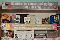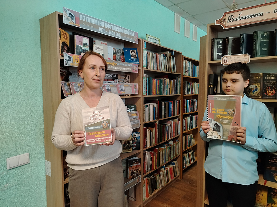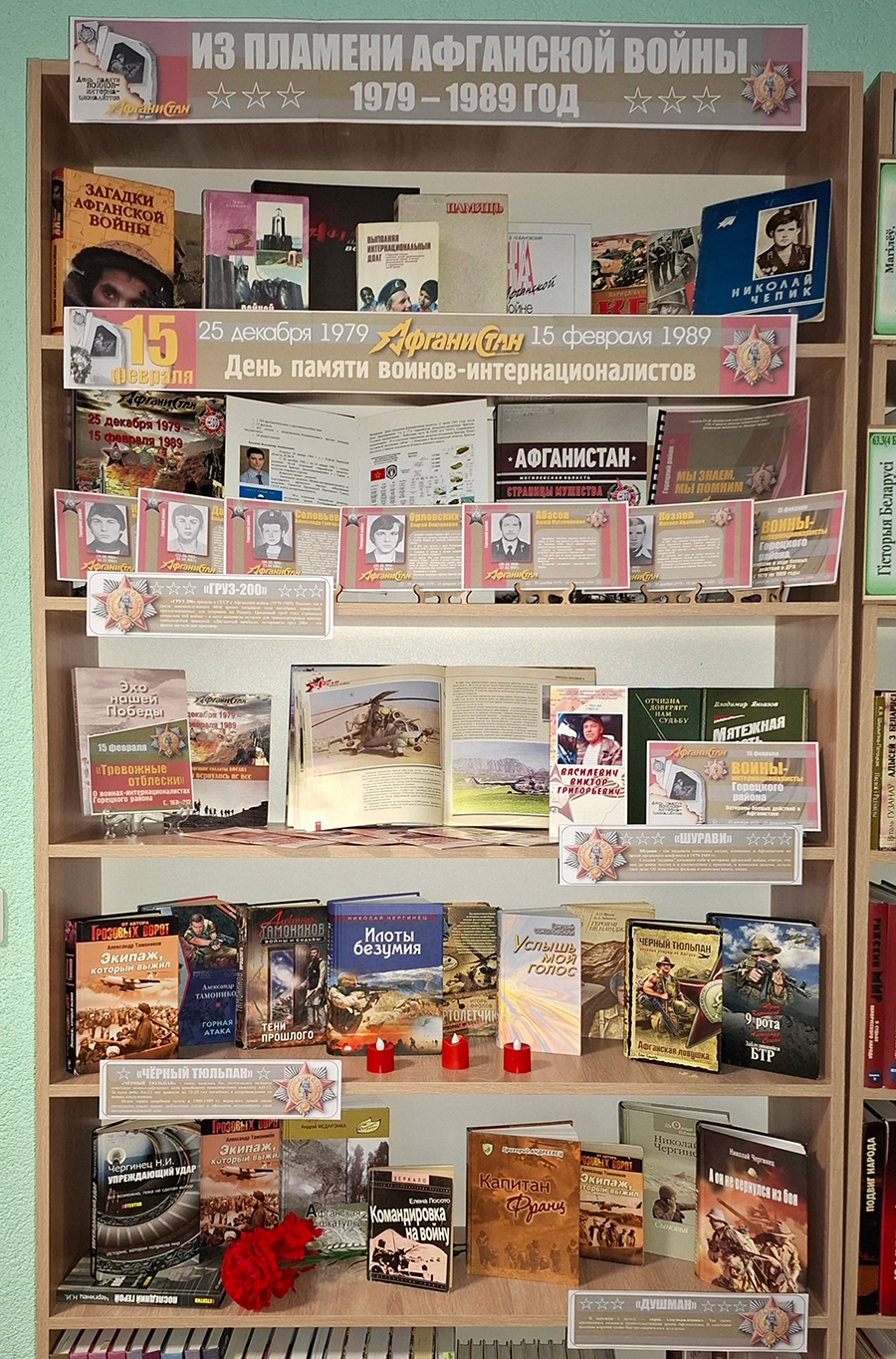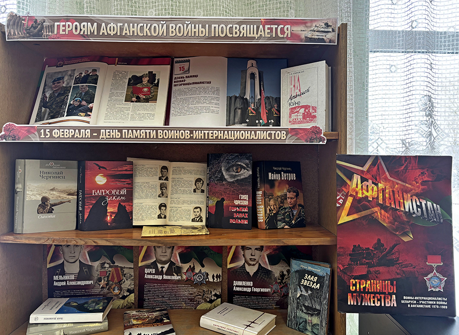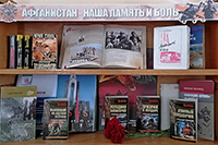 Также в библиотеках сети были подготовлены тематические выставки: «Из пламени Афганской войны 1979-1989 гг.», «Афганистан. Память и боль», «Афганистан – боль в моей душе», «Афганистан. И пусть поколения помнят», «По афганским дорогам», «Афганистан: страницы мужества», «Пока мы помним, мы живем», «Афганистан – наша память и боль», «Героям Афганской войны посвящается». На них экспонируются книги и материалы, рассказывающие о военных конфликтах, о героях, которые проявили невероятную мужество и стойкость. Также представлены свидетельства очевидцев, исторические хроники, художественная литература, поэтические сборники, воспоминания и документальные исследования. Каждая книга – это уникальный рассказ о мужестве и жертвах наших героев, о ценности мира и памяти, который помогает молодому поколению понять и сохранить важность этих событий.