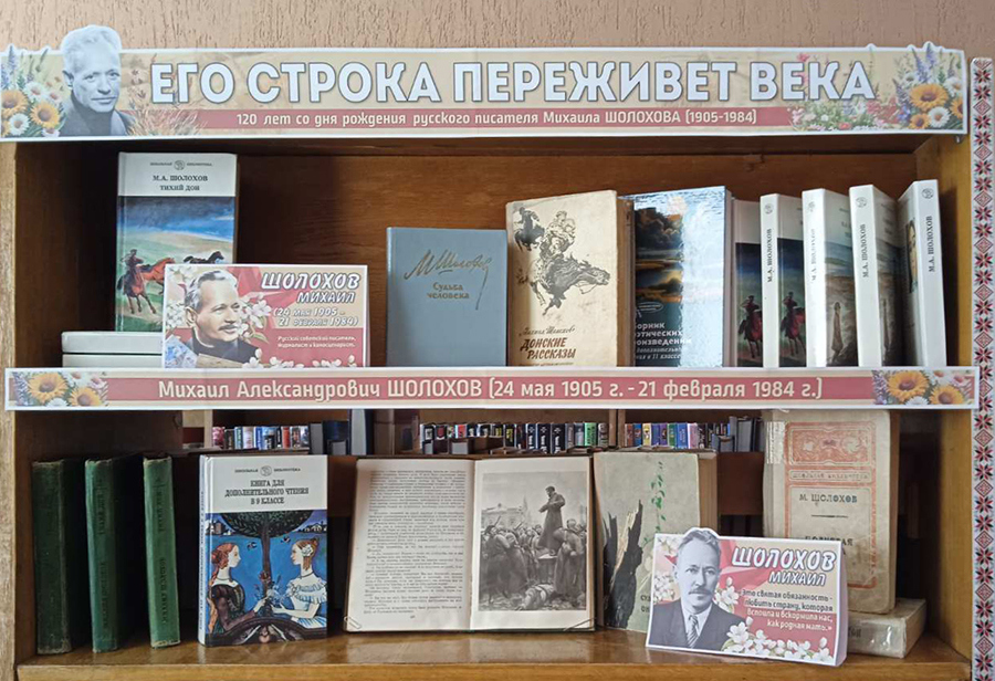 В честь юбилея в библиотеках сети оформлены выставки: «Его строка переживет века», «Певец донской земли», «Листая страницы Шолохова», «Гордость и слава земли донской», на которых представлены воспоминания и статьи о жизни и творчестве писателя. Посетители смогут погрузиться в мир Шолохова, узнать больше о его литературном наследии и общественной деятельности. Открыть для себя интересные факты из жизни и творческого пути прославленного писателя, и, конечно же, впервые познакомиться или с удовольствием перечитать заново яркие, самобытные, неповторимые, произведения писателя, уже ставшие классикой русской литературы.