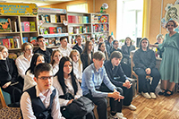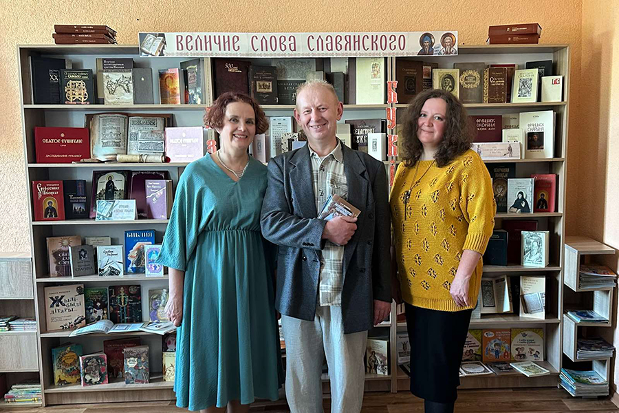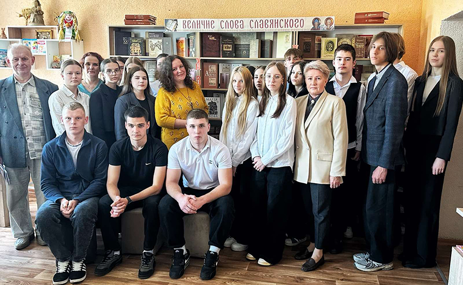 В центральной библиотеке им. Максима Горецкого прошел духовно-просветительский час «Величие слова славянского», приуроченный ко Дню славянской письменности и культуры. На встречу со школьниками и студентами были приглашены члены Союза писателей Беларуси и народного литературного коллектива «Роднае слова» Наталья Никончук, Алеся Цеван и поэт Александр Веденеев.