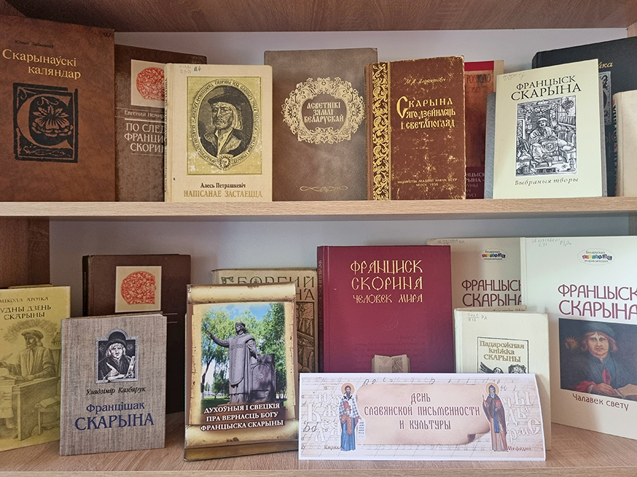 Ведущая мероприятия, сотрудник библиотеки Наталья Никончук, рассказала об истории праздника, о создателях славянской азбуки Кирилле и Мефодии, а также о первопечатнике земли белорусской Франциске Скорине, привела интересные факты из жизни просветителей. Она прочитала свои стихи «Буслы Скарыны» и «З дзённіка Францішака Скарыны». Также библиотекарь провела обзор книжной выставки «Величие слова славянского», на которой, представлена богатая и разнообразная литература, охватывающая исторические аспекты создания славянской азбуки, биографии святых Кирилла и Мефодия, а также вклад белорусских просветителей и учёных в развитие письменности и культуры. Здесь можно найти как классические издания и памятные книги, так и современные исследования, статьи и иллюстрированные издания, которые помогают лучше понять исторический контекст и значение этого важного праздника.