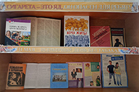 В завершении мероприятия библиотекарь провела для собравшихся обзор выставки «Курение – опасная ловушка». На экспозиции были представлены издания из фонда библиотеки о пагубном влиянии курения на организм человека, о способах отказа от этой вредной привычки, а также книгами по здоровому образу жизни.
