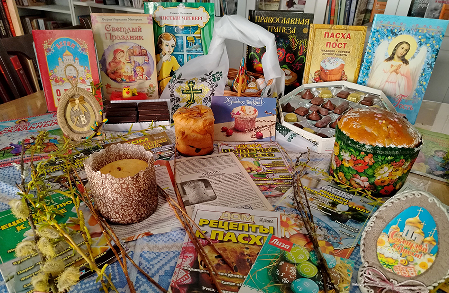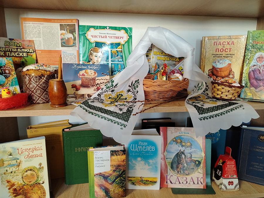 В преддверии праздника в центральной библиотеке была оформлена выставка-инсталляция «Пасха Красная, Пасха Господня!». Книжные полки украсили издания, посвящённые истории и традициям праздника: Духовная литература о Воскресении Христовом, сборники пасхальных рассказов и стихов, книги о народных обычаях и обрядах. Особое место заняли кулинарные книги и журналы с рецептами пасхальных куличей, творожных пасх и других праздничных угощений, а также издания по декоративно-прикладному творчеству с идеями украшения пасхального стола и росписи яиц.