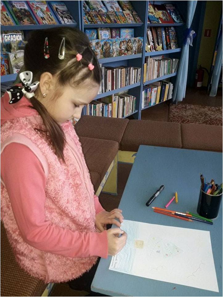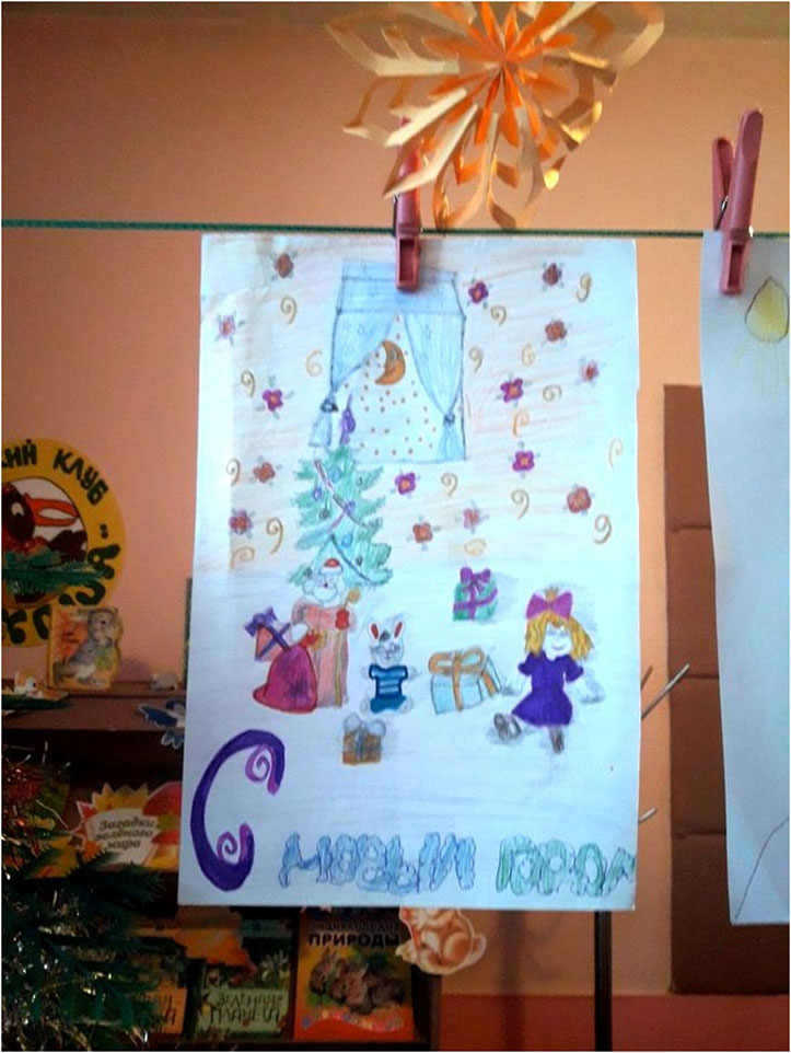 Выставка рисунков в фойе библиотеки, радующая каждого из посетителей – это результат прошедшего во время каникул конкурса «Как блестит огнями елка» – сотрудники РДБ предложили читателям самим смастерить или нарисовать зеленых красавиц. Активное участие в конкурсе самоделок приняли, конечно, дошкольники и младшеклассники: каждый хотел поделиться своей оригинальной идеей изготовления праздничного символа. Но перед тем как окунуться в творчество, юные художники смогли познакомиться с яркими красочными журналами и книгами на заданную тематику.