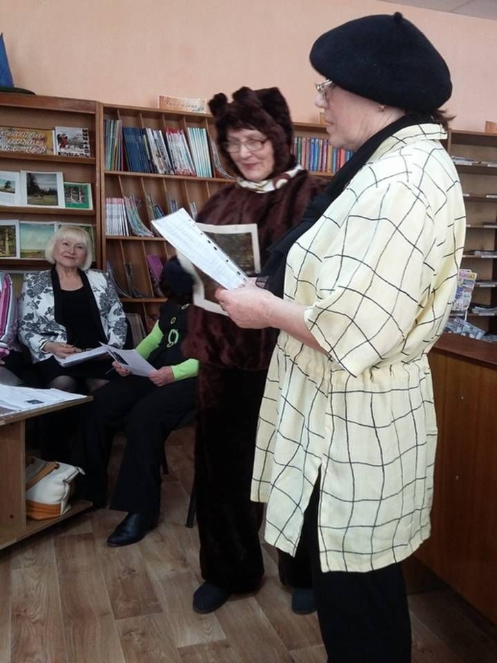 Простым перечислением дат и названий не ограничились – перед изумленными слушательницами развернулись костюмированные сценки по мотивам упомянутых произведений. Из-за импровизированных кулис появился медведь с той самой поляны, а потом и заговоривший с ним о своих планах художник в неизменном берете, а потом – набежали и волны. «Мы попытались создать что-то вроде театрализованных сказов о двух художниках , - объяснила организатор Елена Морозова, - лесном и художнике волны, обыграть тематику их работ» .