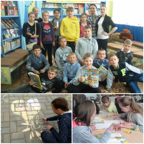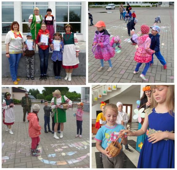 Сотрудник Овсянковской сельской объединенной библиотеки приняла непосредственное участие в концертно-развлекательной программе «Праздник детства – это я и ты!», которая была организована вместе с работниками сельского дома культуры в танцевальном зале местного ДК. Ребят поздравляли с праздником такие сказочные герои, как Доктор Айболит, Петушок, Карлсон, Ириска и многие другие. Программа включала множество конкурсов и соревнований: «Витаминное ассорти», «Собери конфеты для Карлсона», танцевальный номер «Вышел петушок гулять», «Если тянет веселиться – делай так». В исполнении детей из вокально-хоровой школы искусств для всех присутствующих прозвучали песни «Здравствуй, Солнце», «Я знаю», «Кнопочки баянные», «Кадриль», «За Беларусь» и «Зямля з блакітнымі вачамі». Кроме этого, среди юных посетителей библиотеки был проведен конкурс рисунка на асфальте «Мир глазами детей», где ребятам было предложено воплотить с помощью мелков свои представления об окружающем состоянии природы.