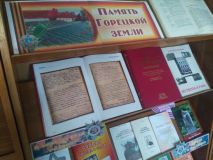 Среди экспонатов выставки – самые разнообразные издания, посвященные великой победе советского народа в Великой отечественной войне. На полках собрано множество мемуаристической литературы: среди авторов воспоминаний – наши земляки, принявшие непосредственное участие в тех трагических событиях (Д. Войстров, И. Стельмашонок, С. Сидоров, И. Якубовский, Г. Дольников и другие). На страницах их книг, написанных живым языком очевидцев, перед читателями словно заново оживают картины военного лихолетья, переосмысливаются отдельные эпизоды наступательной операции в нашем регионе, описываются судьбы отдельных людей, чей вклад в общее дело Победы нельзя переоценить. Каждый из них не жалел сил и жизни ради скорейшего избавления Горецкий земли и ее жителей от коварно напавшего врага – в партизанских лесах, высоко в небе и в пехотных наступлениях шла эта нескончаемая борьба. Например, для посетителей выставки уникальным свидетельством тех времен стала книга-альбом небезызвестного А. Богомолова «Из пепла и руин». Уникальность этого достаточного редкого издания в том, что оно богато иллюстрировавно оригинальными фотографиями, принадлежащими самому автору книги, участнику боев за освобождение Белоруссии, взятие Кенигсберга и Берлина.