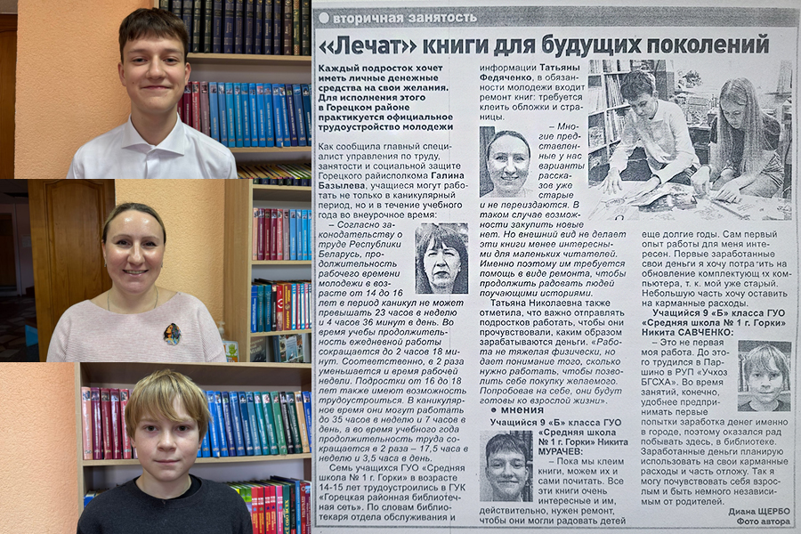 Щербо, Д. «Лечат» книги для будущих поколений : [семь учащихся ГУО «Средняя школа № 1 г. Горки» в рамках вторичной занятости работали во внеурочное время в Горецкой центральной библиотеке им. М. Горецкого] / Диана Щербо. – Текст : непосредственный // Горацкі веснік. – 2025. – 12 лістапада. – С. 5. – URL : https://gorkiv.by/lechat-knigi-dlya-budushhih-pokolenij-goreczkie-shkolniki-uchatsya-zarabatyvat-dengi/. – Дата публикации : 15.11.2025.