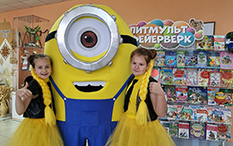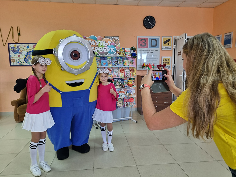 Как только гости подходили ко входу в кинотеатр, их встречали не просто улыбающиеся персонажи – а живые, огромные, настоящие ростовые куклы Волка, Лисы и Миньона. Дети просто сияли от восторга, стремясь обнять мультяшных героев и сфотографироваться с ними на память – настоящая анимационная магия в реальности!