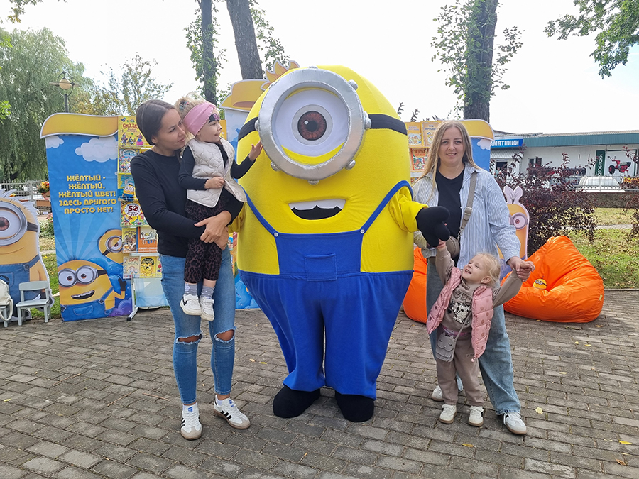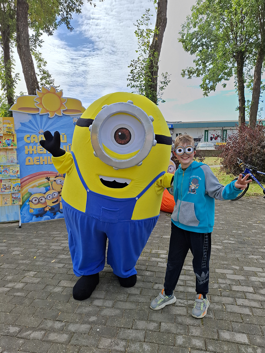 Особое удовольствие гостям доставила самодельная ростовая кукла Миньон — веселого, забавного и любимого героя мультфильмов, которая вызвала у всех улыбки и восторг. Эта чудесная кукла стала главным «магнитом» праздника, привлекая и детей, и взрослых, даря улыбки и море позитива. Люди фотографировались с Миньоном, на фоне красочной экспозиции, делились снимками в социальных сетях и получали заряд радости и хорошего настроения.