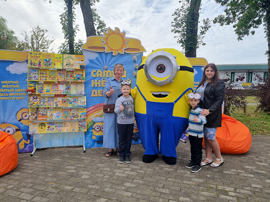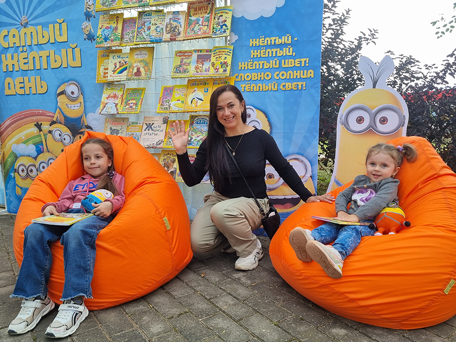 В рамках праздника сотрудники центральной библиотеки им. М. Горецкого подготовили по‑настоящему масштабную и яркую фотозону под названием «Самый желтый день», оформленную в жёлтых тонах — символе солнечного настроения, тепла и оптимизма. В центре внимания оказались книги жёлтого цвета, которые были аккуратно размещены на специальных стендах, создавая эффект солнечного сияния.