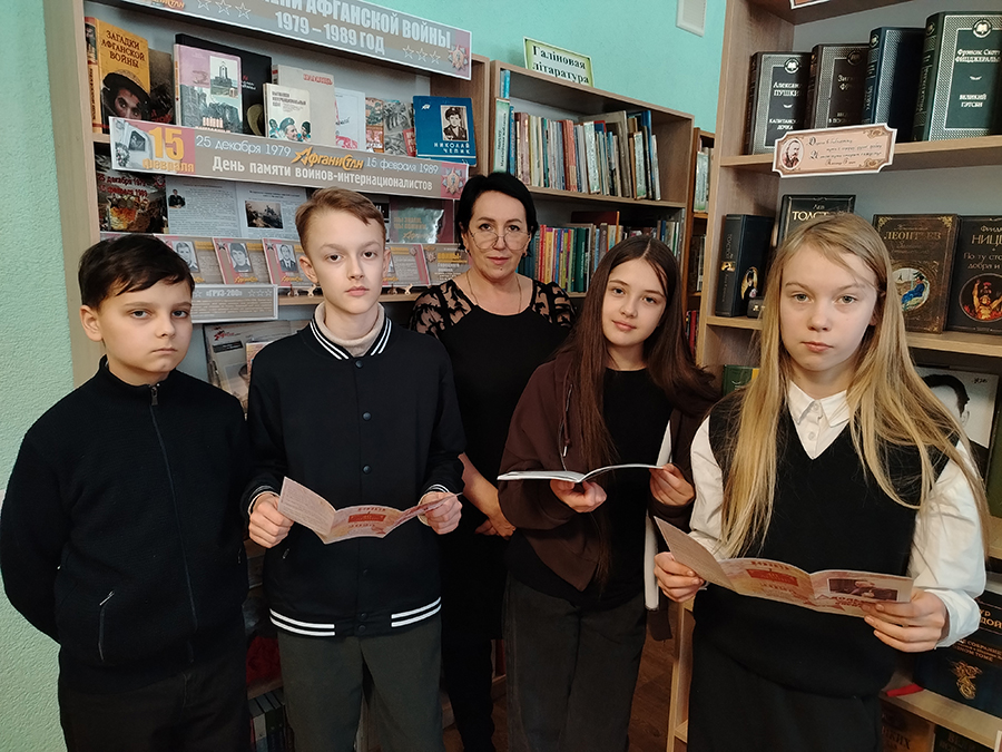 Накануне памятной даты в центральной библиотеке им. М. Горецкого прошли уроки памяти «Жгучая память Афгана». На мероприятиях собрались учащиеся 6-х классов ГУО «Средняя школа №2 г. Горки», чтобы вместе вспомнить о мужестве и подвигах воинов интернационалистов. Библиотекари рассказали о героических и трагических событиях в Афганистане, о стойкости наших солдат и их самоотверженности. В ходе занятия были продемонстрированы фотослайды, заснятые в годы войны, а также прочитаны стихотворения, наполненные искренней благодарностью и уважением. Детям поведали о ценности мира и о том, что память о героях – это наш главный долг и священная обязанность.