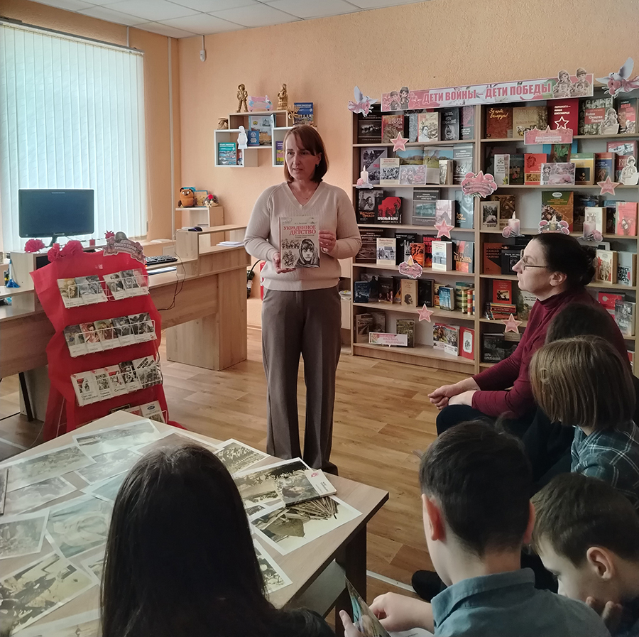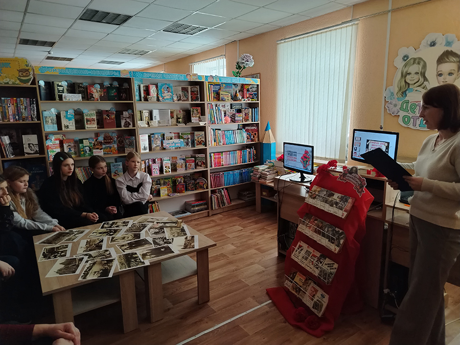 Также для школьников были организованы особые мероприятия: урок памяти «Вставали в строй девчонки и мальчишки», час памяти «Войной изломанное детство», патриотический час «В маленьком сердце – священный огонь», беседа «Детство, опаленное войной», презентация «Их подвиг жив».