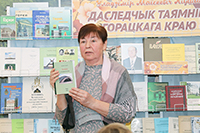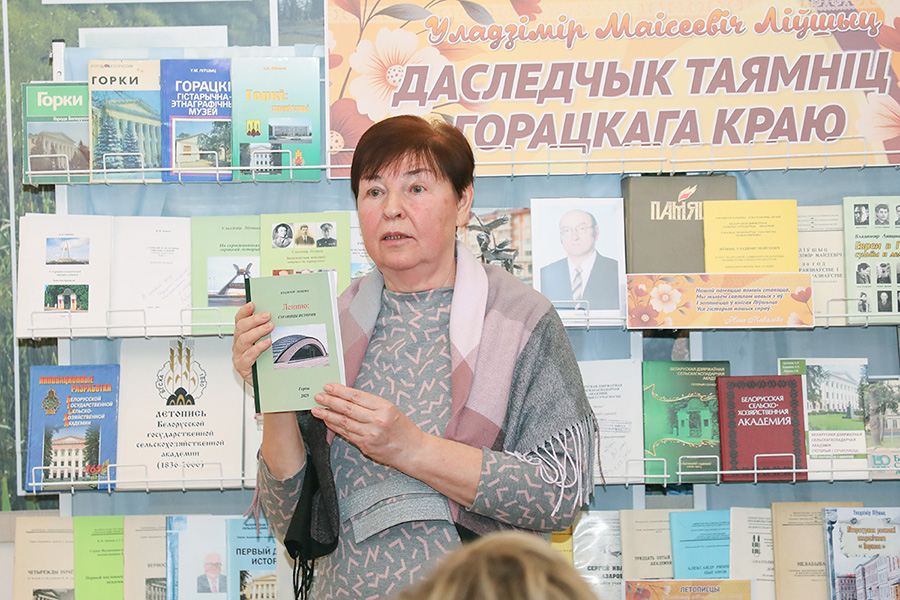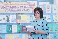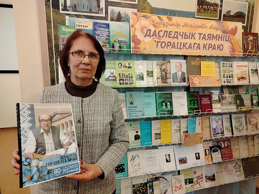 Нина Николаевна Дылькова, библиограф центральной библиотеки им. М. Горецкого, напомнила о книжных изданиях Владимира Лившица, подчеркнула их значимость для местной библиографии и читательского интереса. Кроме того, представила вниманию присутствующих новый библиографический указатель «Летапісец Горацкага краю», изданный к 80-летию юбиляра.
