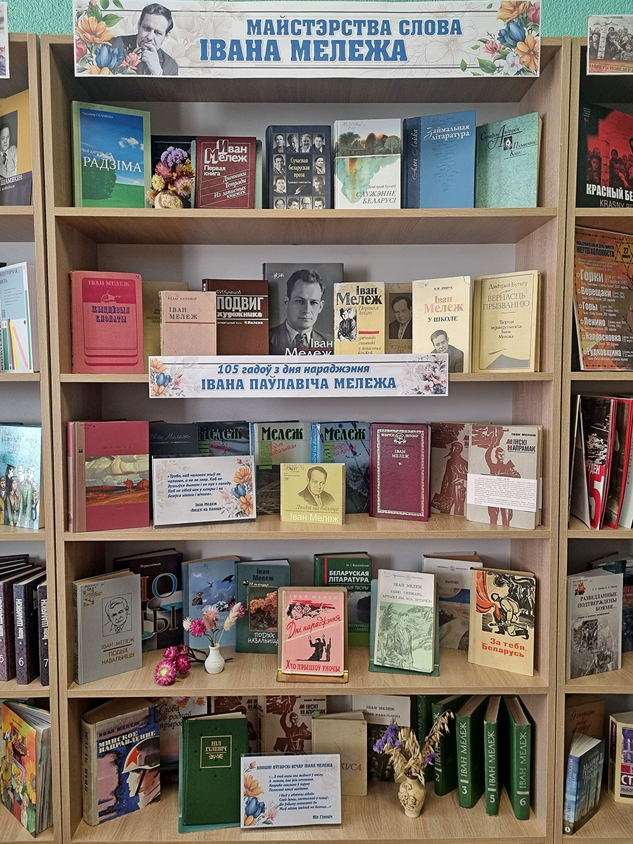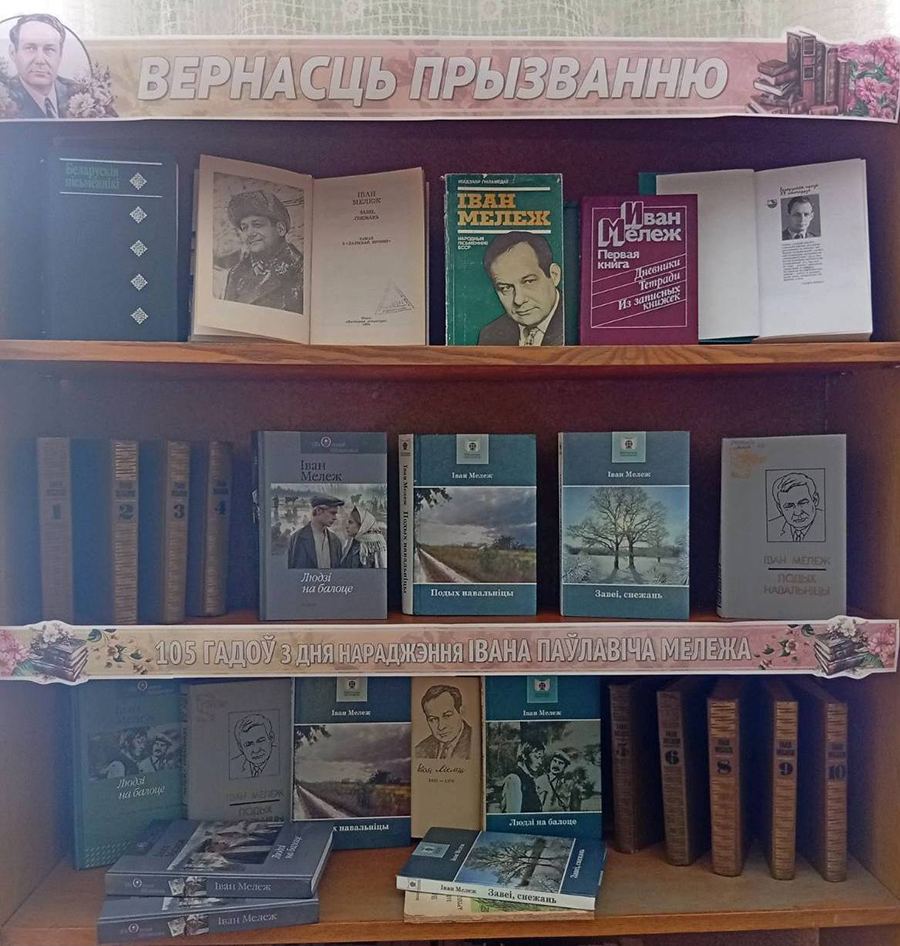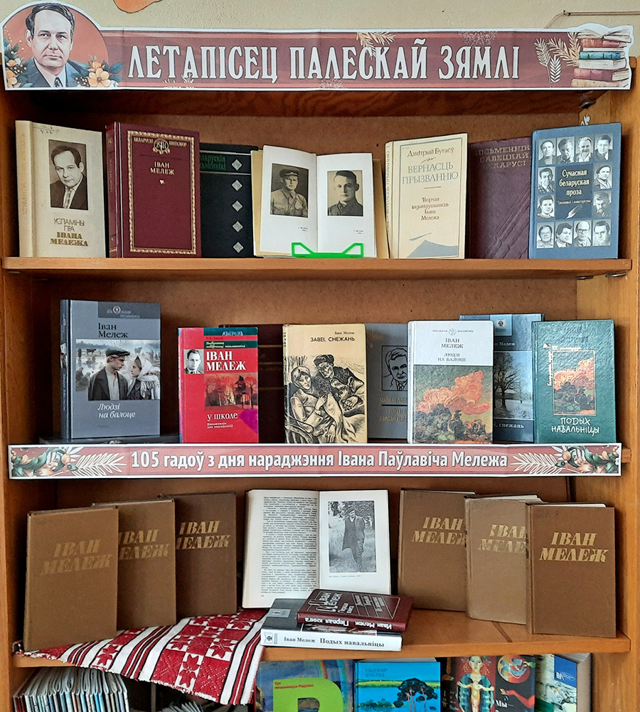 Да юбілею пісьменніка у бібліятэках сеткі былі аформлены выставы: «Майстэрства слова Івана Мележа», «Зорка беларускай літаратуры», «Сцежкамі Мележа», «Летапісец Палескай зямлі», «Палескай зямлі волат», «Пясняр Палескага краю», «Іван Мележ: творчасць і лёс», «Вернасць прызваню». На экспазіцыях прадстаўлены зборы твораў пісьменніка, аповесці, раманы, артыкулы і кнігі, якiя адлюстроўваюць жыццё і творчасць знакамітага літаратара.