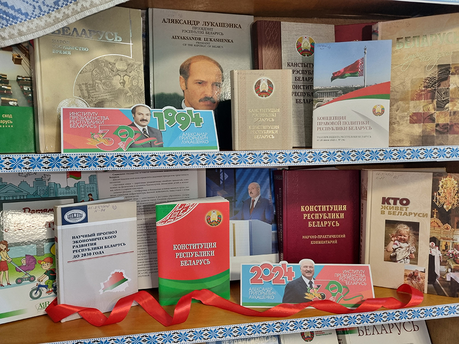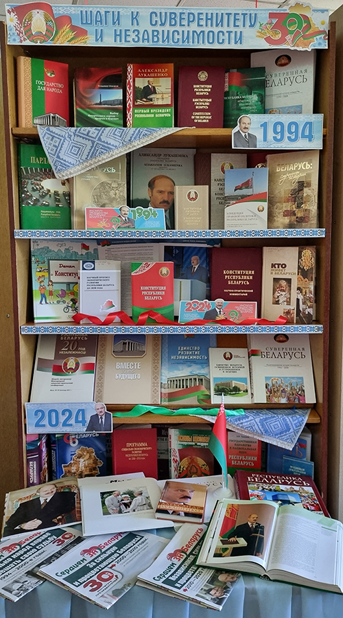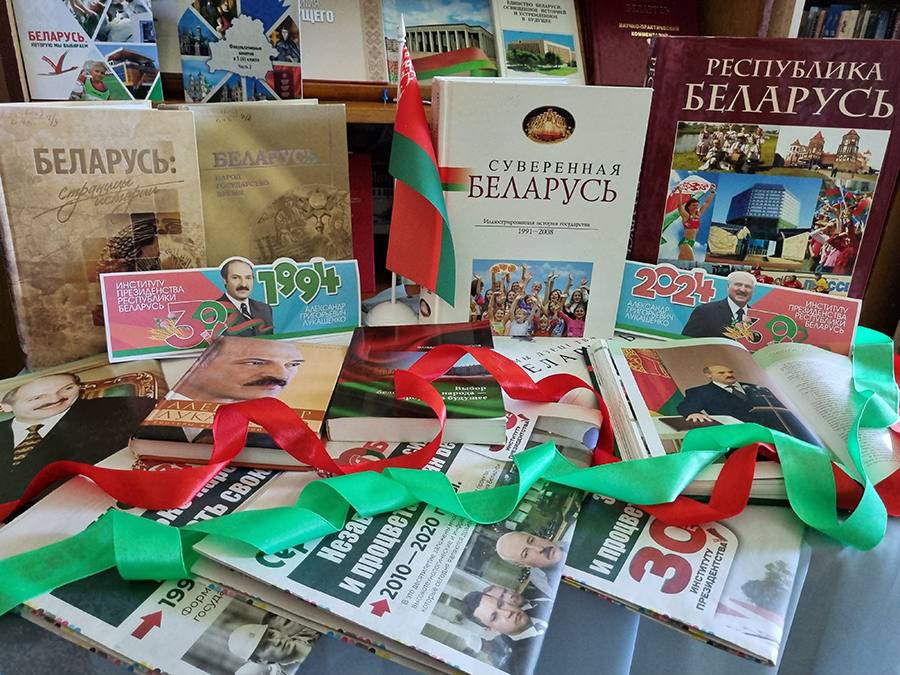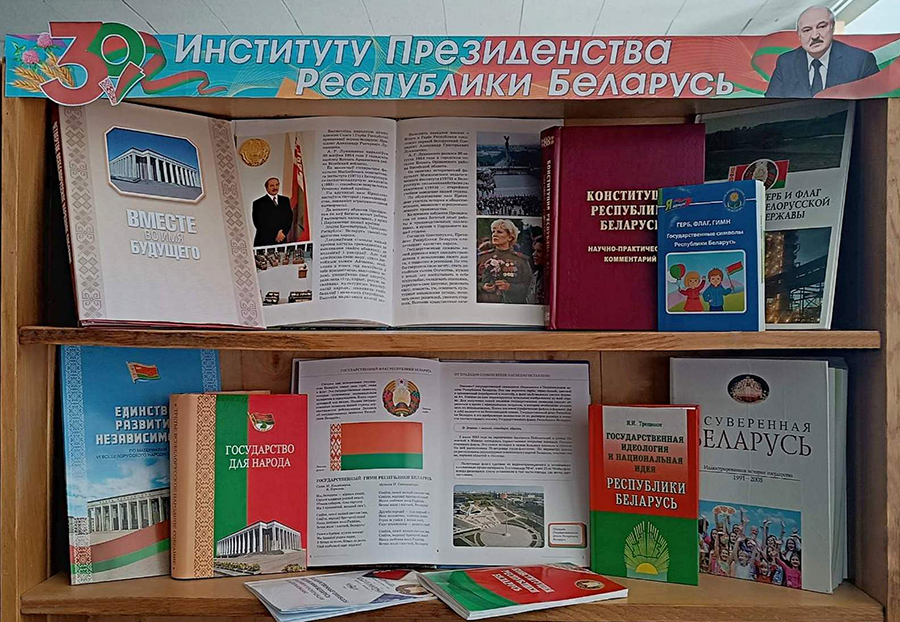 К 30-летию института президентства Республики Беларусь в библиотеках сети организованы тематические выставки «Тридцать суверенных лет», «Шаги к суверенитету и независимости», «30 лет институту президентства Республики Беларусь», «30 лет развития».