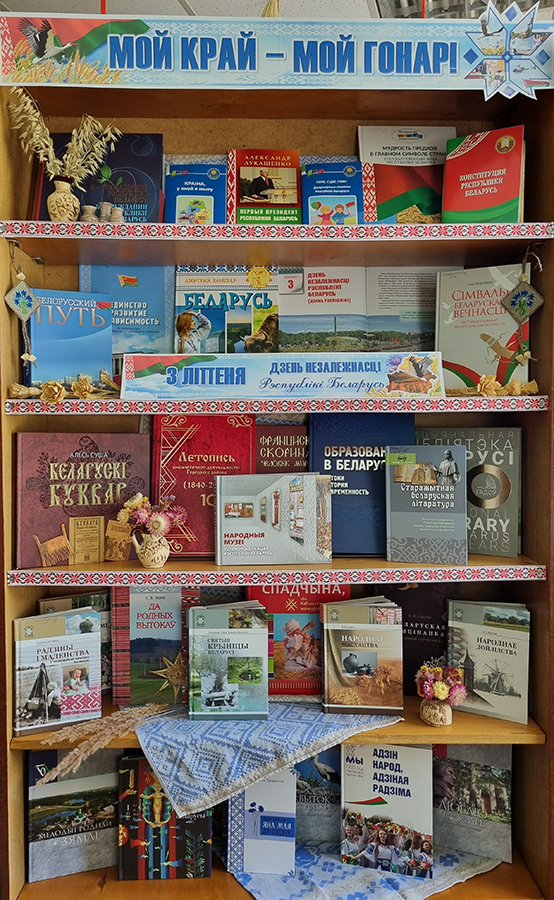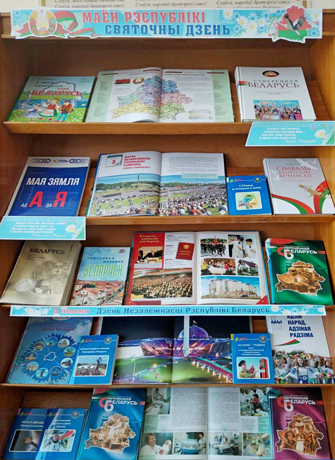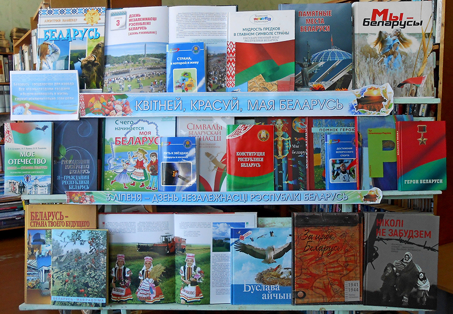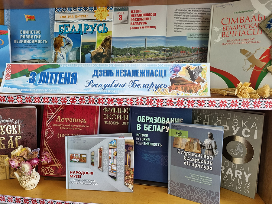К этой праздничной дате в библиотеках ГУК «Горецкая районная библиотечная сеть» оформлен ряд тематических выставок: «Мой край – мой гонар», «Горжусь своей страной», «Моя страна – Беларусь», «Мая Радзіма – Беларусь», «Маёй Рэспублікі святочны дзень», «Прыгажэйшая на свеце – беларуская зямля», «Квітней, красуй, мая Беларусь».