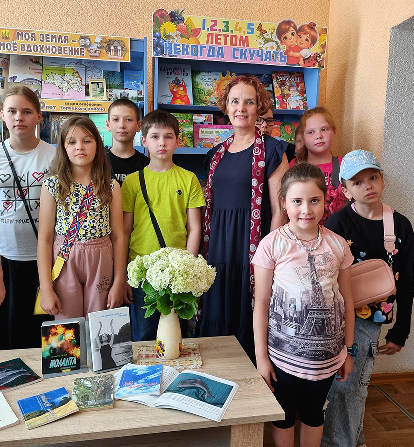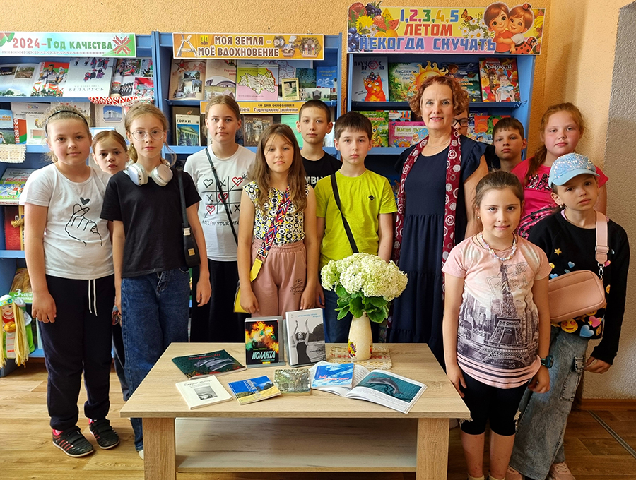 Наталля Валянцінаўна пазнаёміла вучняў са сваімі друкаванымі выданнямі: кнігай вершаў «Любоў крылатая істота», фантастычным дэтэктыўным аповедам «Іаланта», дзіцячай кнігай «Дэльфінчык Агу», дэтэктыўным раманам «…Кранаючы неба рукамі”. Асаблівую зацікаўленасць выклікала кніга пісьменніцы «Дэльфінчык Агу».
