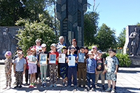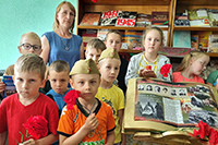Никого не оставил равнодушным рассказ библиотекарей, посвященный маленьким героям Великой Отечественной войны. Юные, совсем юные, мальчишки и девчонки, те, кому в 41-м было чуть больше, чем пришедшим ребятам из лагеря, те, кто на груди с гордостью носили пионерский галстук или комсомольский значок, совершили бессмертные подвиги. Вместе со взрослыми сражались в партизанских отрядах дети Герои Советского Союза: Владимир Щербацевич, Витя Черевичкин, Лёня Голиков, Зина Портнова, Марат Казей и многие другие.