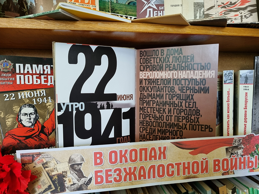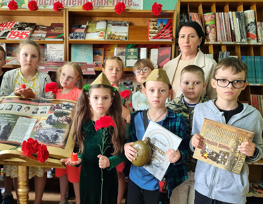 В библиотеках сети также прошли мероприятия: исторический час «Память через года», акция «Никто не забыт, ничто не забыто», церемония возложения цветов «Их славе память потомков верна», акция «Зажги свечу памяти», час памяти «Тревожный рассвет 1941 года», обзор «Мальчишки в солдатских шинелях». В ходе мероприятия ребятам рассказали о первых часах начала Великой Отечественной войны – первых часах того памятного дня 22 июня 1941 года, которые оборвали жизни ни в чем не повинных людей, о героизме солдат в дни войны, об односельчанах – участниках войны, ушедших защищать Родину, об их боевых действиях, об их подвигах и наградах. Дети узнали, сколько горя принесла война нашему народу, и о тяжести испытаний, выпавших в те годы на детские плечи. Почтили память погибших минутой молчания и возложили цветы к памятникам землякам и у братских могил неизвестным солдатам, которые отдали свои жизни, освобождая родной край от немецко-фашистских захватчиков.