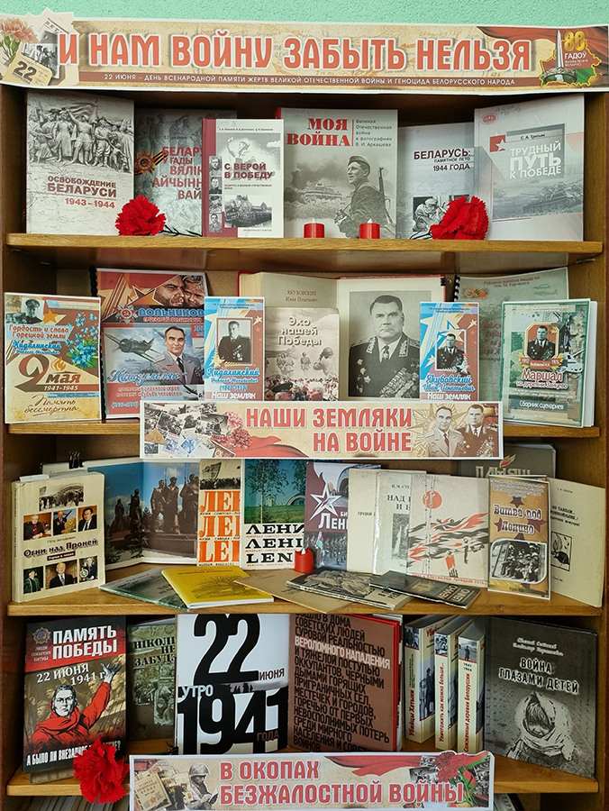 К этому дню в библиотеках ГУК «Горецкая районная библиотечная сеть» оформлен ряд тематических выставок: «В окопах безжалостной войны», «Трагические страницы истории», «Помнит сердце, не забудет никогда», «Жизнь, опаленная войной», «Нам жить и помнить», «Дорога памяти длиной в 4 года».