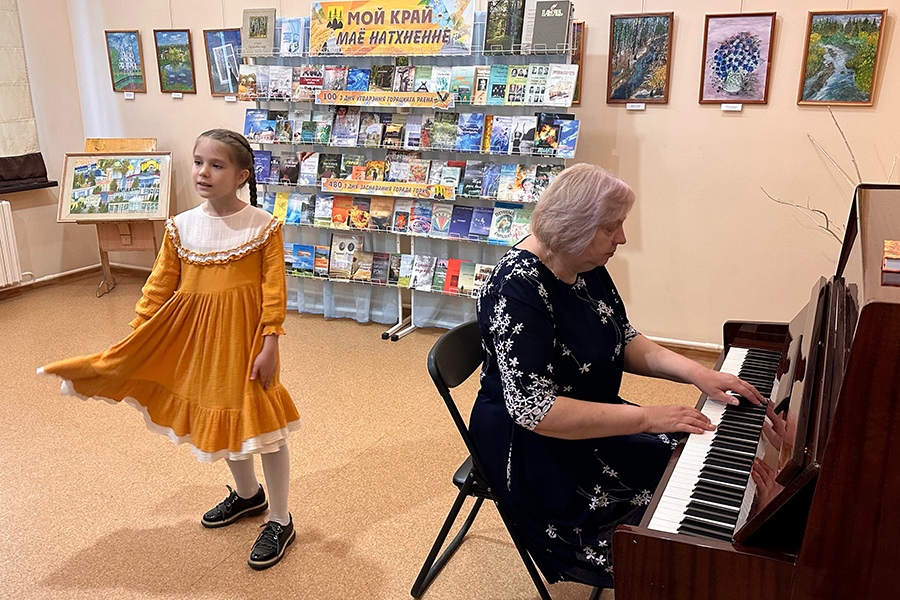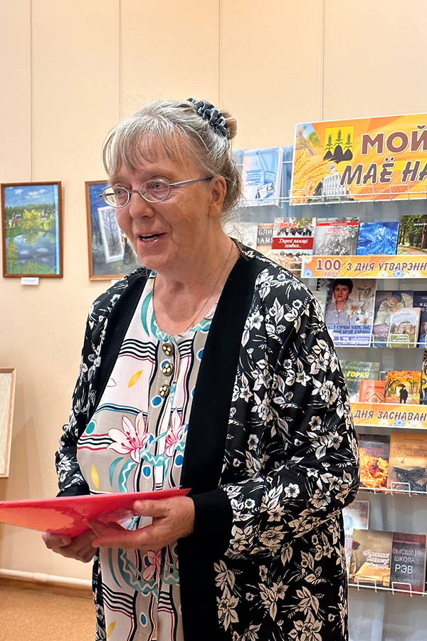 Вядучая мерапрыемства – выдатны апавядальнік і суразмоўца, яна расказала аб сваім творчым шляху, калі яна пачала пісаць свае першыя літаратурныя творы. Гэта былі артыкулы для раённай газеты і невялікія вершы для дзяцей. Далей аўтарка прачытала верш «Дачушка» і «Гульня ў рыфму». Вядучая прапанавала прысутным хлопчыкам і дзяўчынкам таксама прыдумаць рыфму да свайго імя.