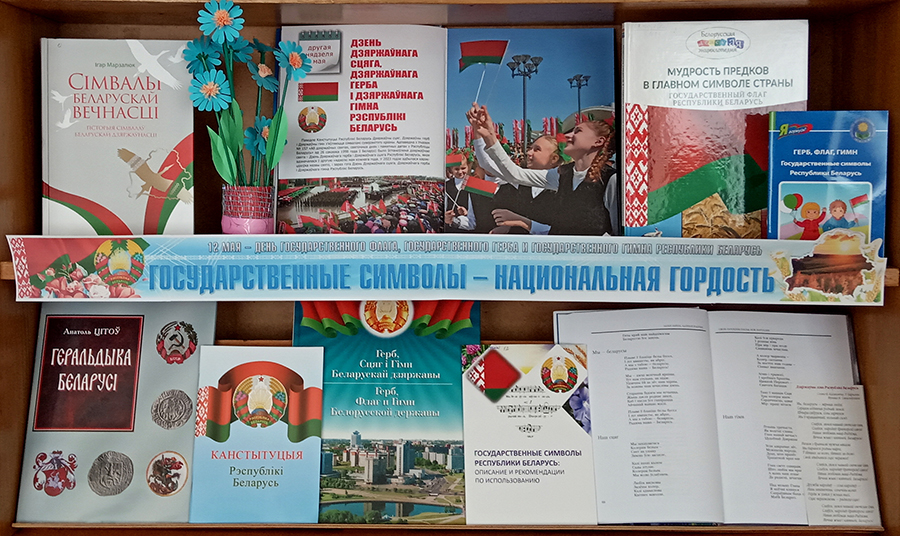 В преддверии государственного праздника в библиотеках сети организованы тематические выставки: «Символы моей страны», «Три главных символа страны», «Государственная символика нашей страны», «Символы государства», «Гімн, сцяг, герб – гісторыя і значэнне», «Государственные символы – национальная гордость», «Символы Родины моей», на которых представлена литература про государственные символы нашей страны, про её историю, про культуру белорусского народа.