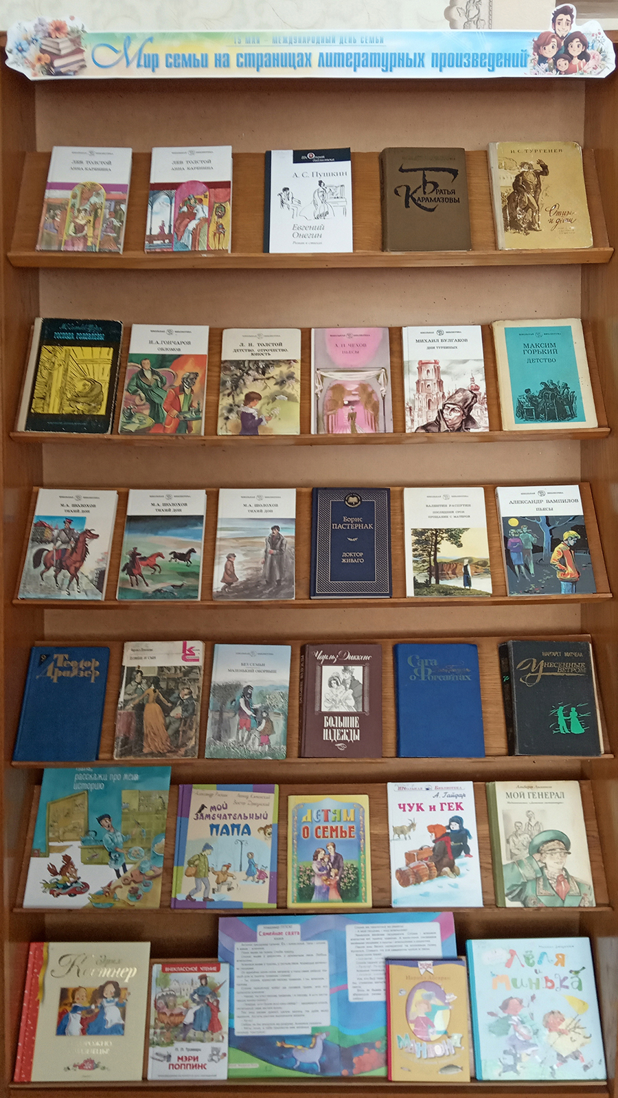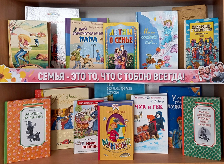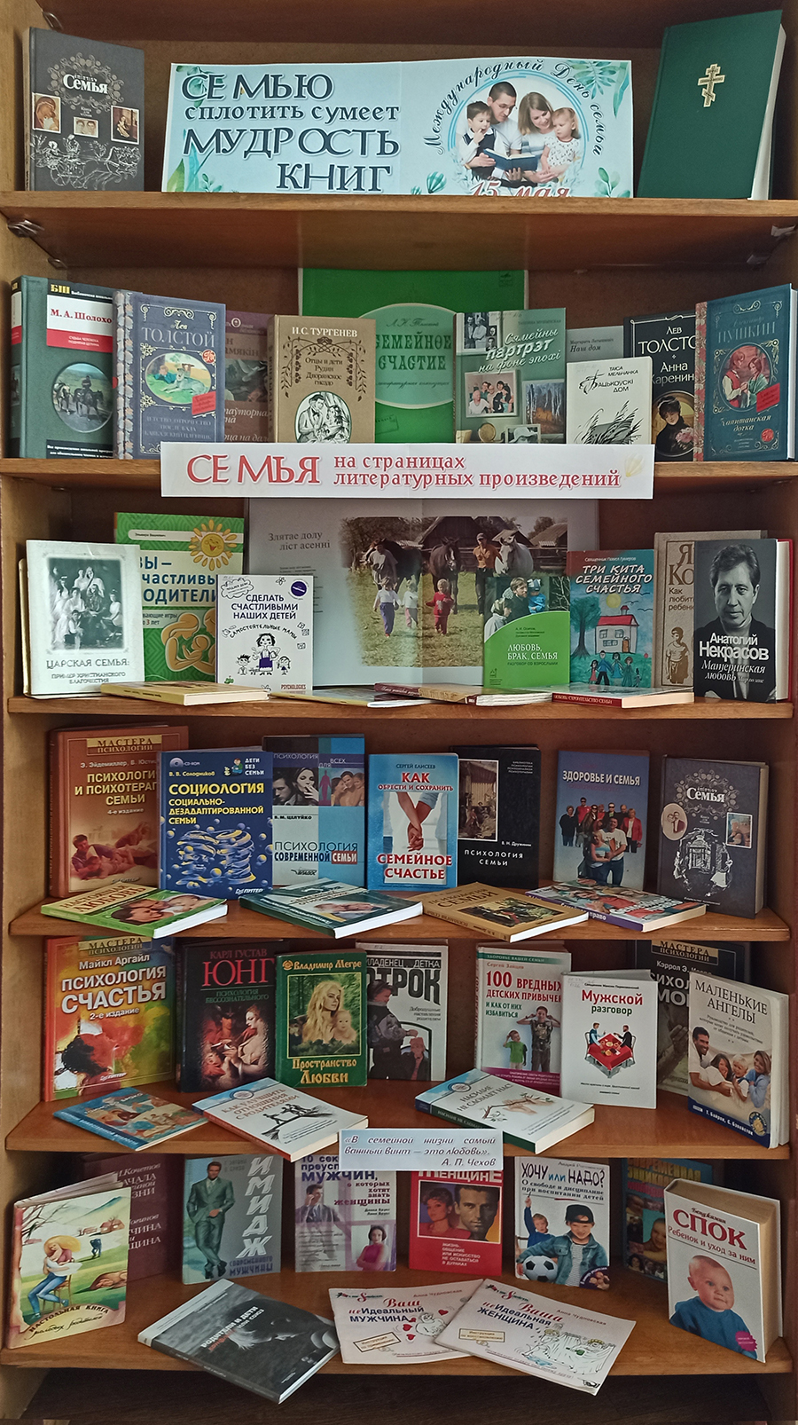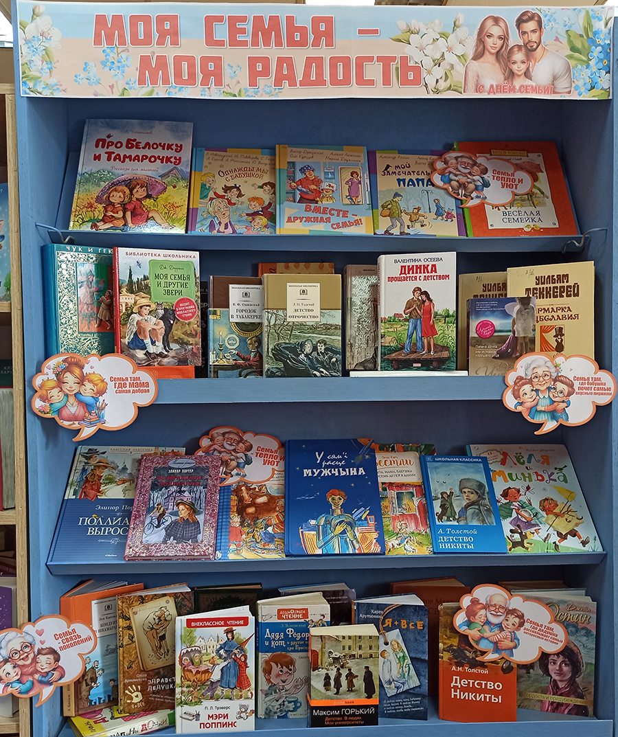 Ко Дню семьи в рамках республиканской акции «Моя семья – моя страна» в библиотеках сети оформлен ряд тематических выставок: «Семья на страницах литературных произведений», «Моя семья – моя радость», «Азбука семьи», «Семья территория счастья», «Семья – сокровище души», «Мир семьи на страницах литературных произведений», «Счастье быть семьей», «Наша дружная семья», «Семья – это то, что с тобою всегда!», «Семейный вопрос на страницах книг».