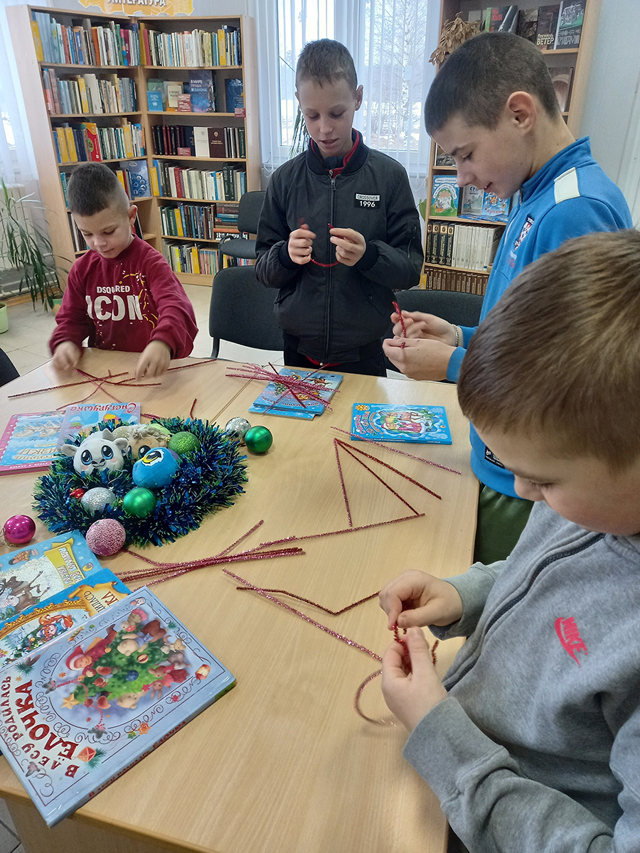 ждали веселые конкурсы, эстафеты и игры: «Зимние месяцы», «Что нам нужно зимой?», «Угадай героя и сказку», «Найди свою рукавичку», «Весёлый снежок» и др. Читатели в ходе минутки творчества проявили всю свою фантазию в изготовлении новогодних поделок и украшений. Совместное творчество принесло массу позитивных впечатлений, а созданные своими руками поделки дети с удовольствием забрали с собой.