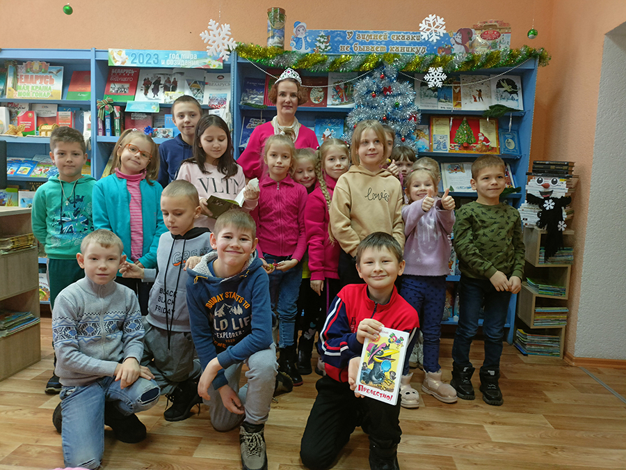 Библиотекарь филиала «Рудковщинская библиотека-клуб» провела для своих читателей игровую программу «У зимних сказок не бывает каникул» и организовала танцевально-игровую программу «Новогодние приключения», которая состояла из театрализованного представления, игр, танцев, песен, хороводов. Ребята отправились в снежную страну новогодних историй, где их