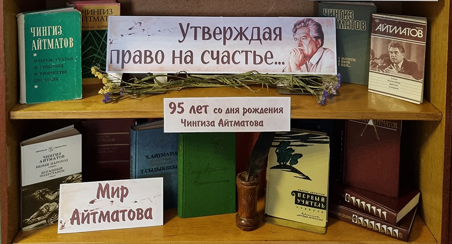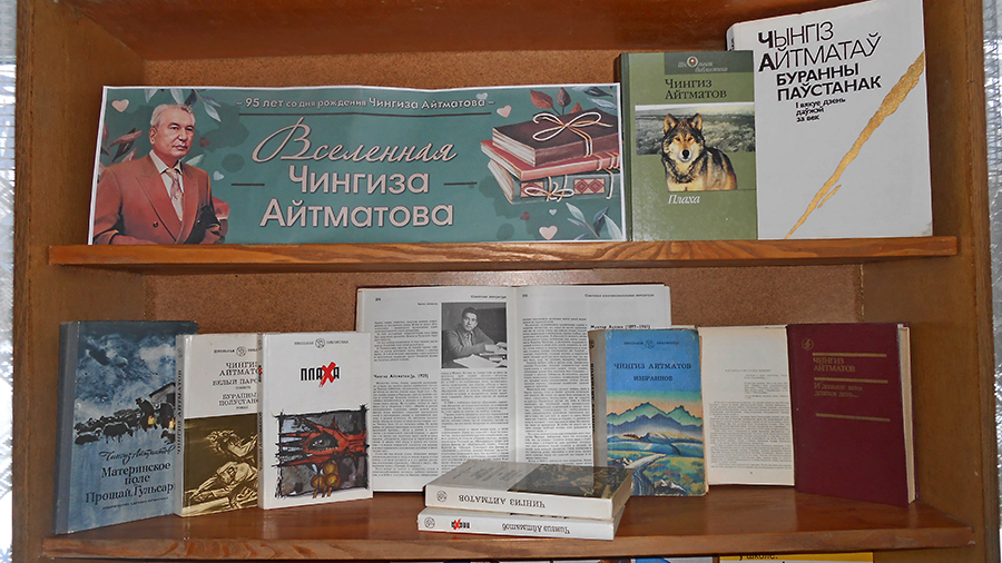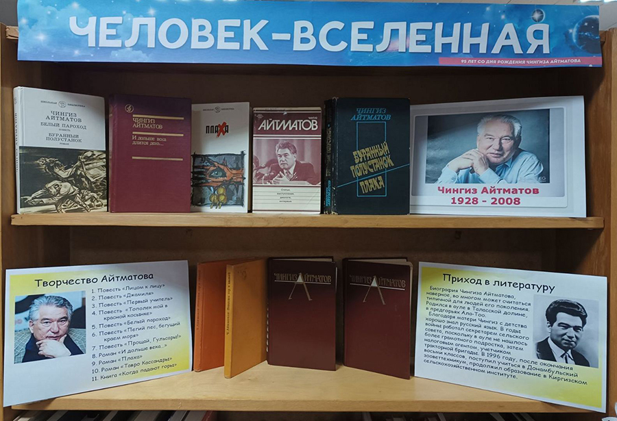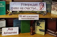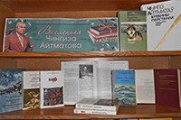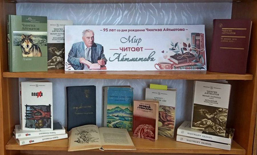 К юбилею Чингиза Айтматова в библиотеках сети оформлен ряд тематических выставок: «Утверждая право на счастье», «Повести гор и степей», «Мир читает Айтматова», «В поисках истины», «Человек-вселенная», «О жизни и творчестве», «Вселенная Чингиза Айтматова». На выставках представлены книги о жизни и творчестве Ч.Т. Айтматова, а также его произведения, которые утверждают идеалы добра, справедливости, совести, мужества и гуманизма.