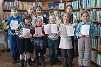 29 декабря состоялась новогодняя конкурсно-игровая программа «В царстве Славного Мороза». В гости к библиотекарям пришли учащиеся начальных классов школьного оздоровительного лагеря «Радуга» ГУО «Средняя школа № 4 г. Горки» со своими учителями. Ребята с удовольствием слушали стихи о зиме и новогодних праздниках, отвечали на поставленные вопросы. Библиотекарь рассказала ребятам о том, где живет белорусский Дед Мороз, и какие стихи пишут дети, побывав в Беловежской пуще. Школьники сдували на скорость снежинки, разгадывали новогодние головоломки, угадывали литературных героев, познакомились поближе с символом наступающего года – драконом.