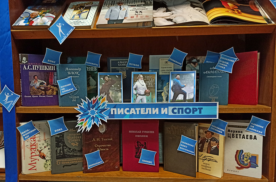 Боксировать любили Джек Лондон и Джордж Байрон. Регби занимался британский писатель Джон Рональд Руэл Толкин. Бернард Шоу играл в теннис, Фолкнер не мог представить свою жизнь без верховой езды. А японский писатель Харуки Мураками проводит много времени в беге на длинные дистанции. Александр Пушкин одним из первых в Российской империи открыл для себя бокс, Лев Толстой предпочитал английский теннис, Ахматова удивляла публику своей гибкостью, Владимир Набоков профессионально играл в футбол, а Сергей Есенин любил плавать. Подраздел выставки «Писатели и спорт» раскрывает интересные факты о спортивных увлечениях известных литераторов. Подробности можно узнать, заглянув на абонемент центральной библиотеки. Выставка будет действовать до 15 августа.